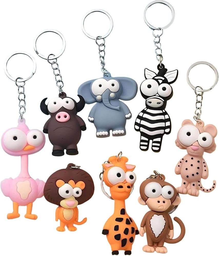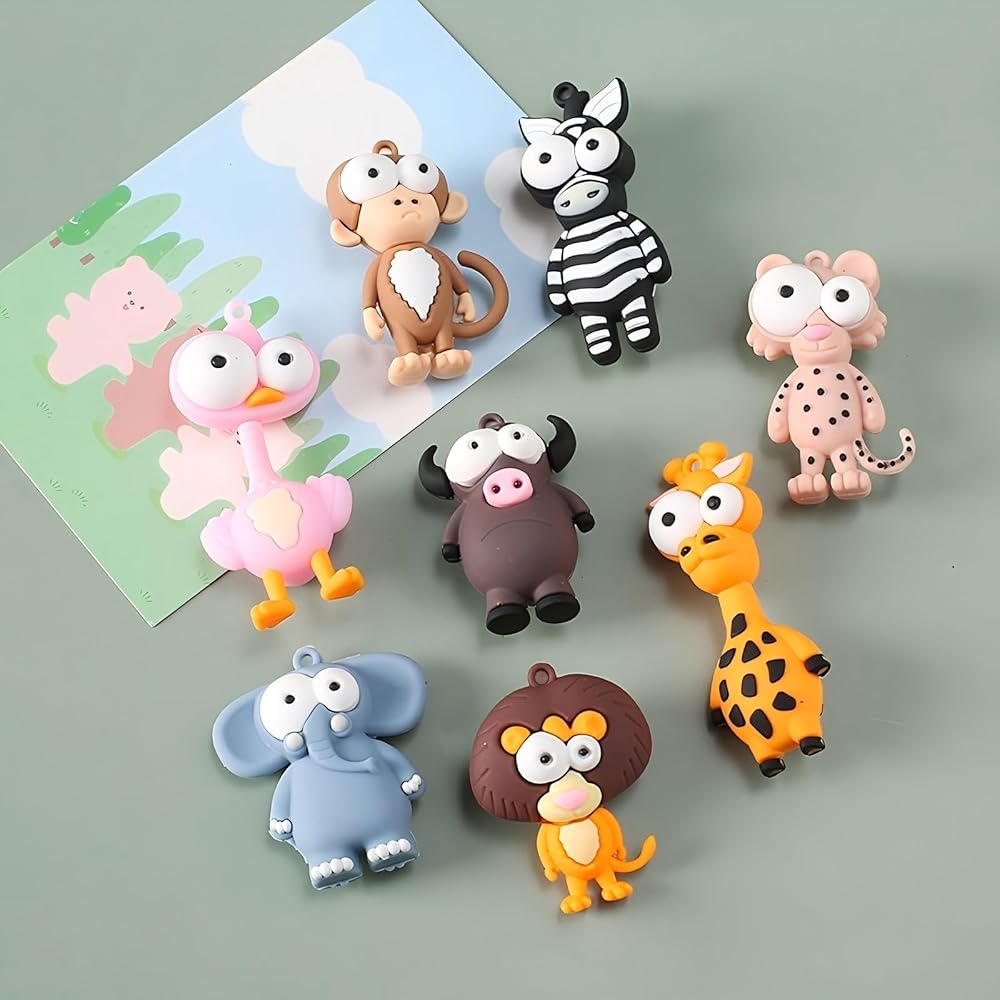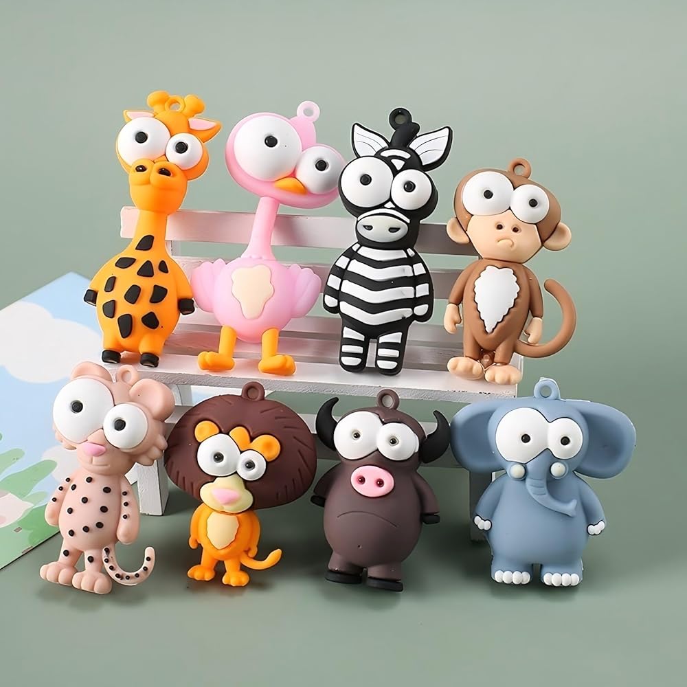 8PCS Cute Animals Keychain - This set includes 8 different cute animal keychains, namely elephants, monkeys, zebras, leopards, ostriches, wild boars, lions and giraffes.