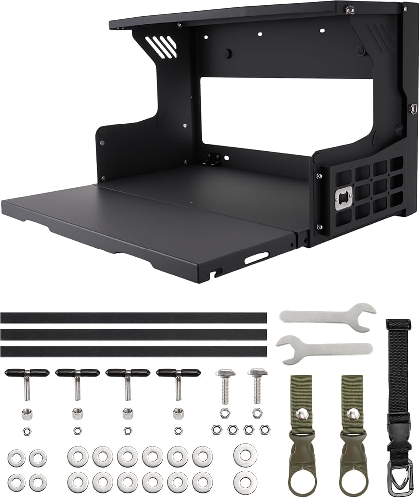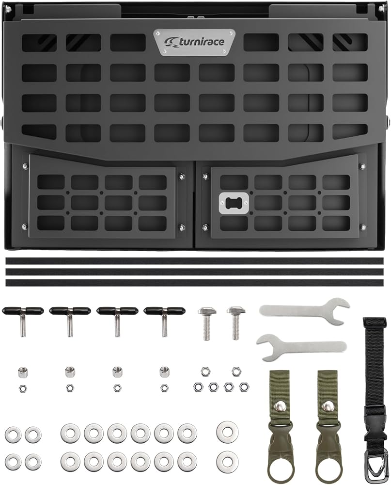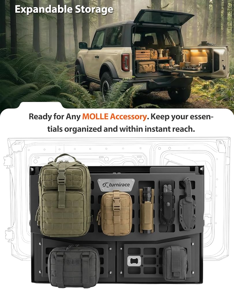 • طاولة MOLLE وطبقة مزدوجة: احصل على مساحة قيمة على الفور. تتميز طاولة مولي الخاصة بنا بسطح مبتكر مزدوج الطبقة لإعداد الوجبات بكفاءة وتنظيم العتاد. عند طيه، يتحول الوجه إلى نظام شبكة MOLLE متعدد الاستخدامات لتنظيم التخزين المخصص، مما يحافظ على كابينة خالية من الفوضى.