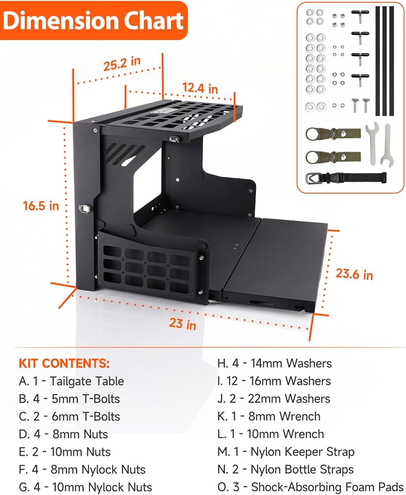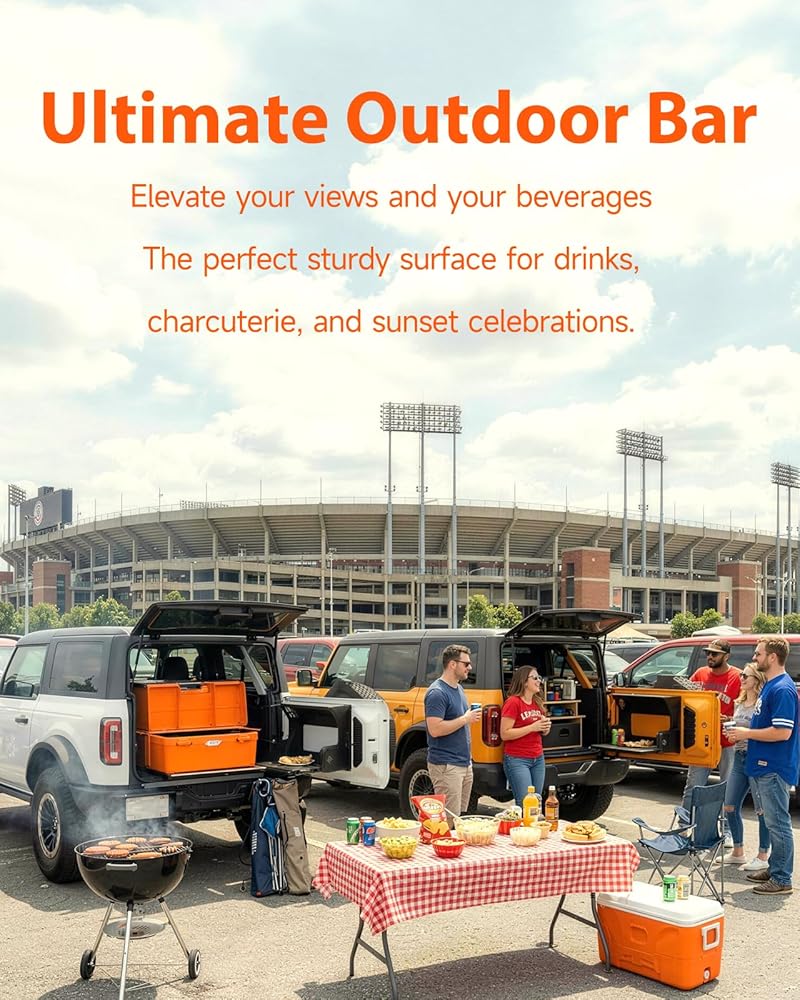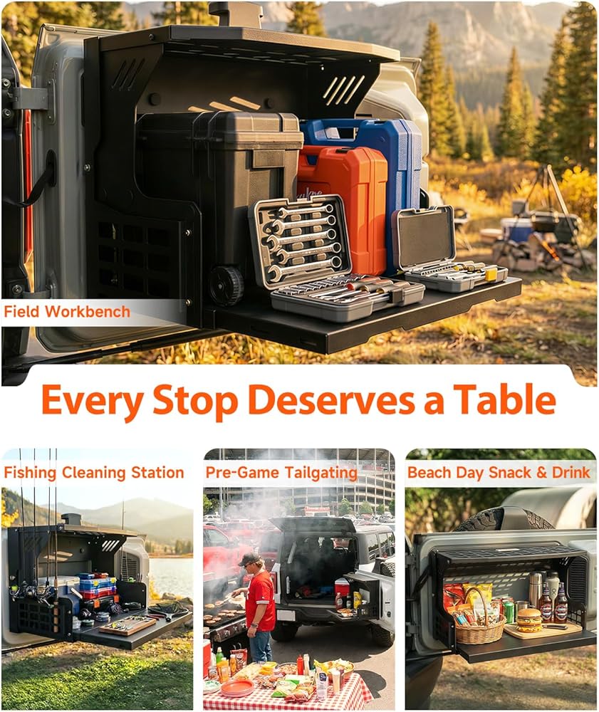 • مركز المغامرة المثالي الخاص بك: مثالي لكل سيناريو: إعداد الطعام، ومنضدة العمل على جانب الطريق، والمكتب الخارجي، ورحلات العائلة. يضمن الطلاء القوي المضاد للتآكل أن يكون استثمارك جاهزًا للحياة البرية لسنوات قادمة.