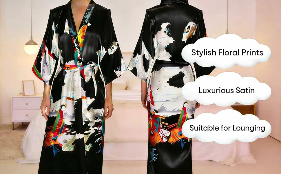 مطبوعات زهور أنيقة: أنماط نابضة بالحياة وعالية الدقة مع لمعان جميل. يضمن النسيج ذو الألوان الثابتة بقاء الرداء مذهلاً، مما يجعله مثاليًا لصباح الزفاف الجذاب أو أيام السبا.