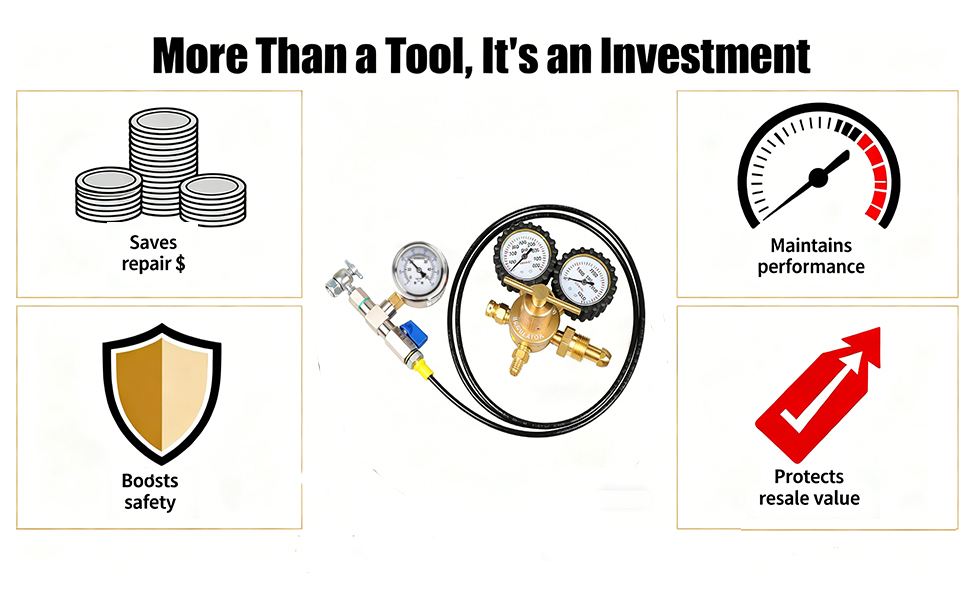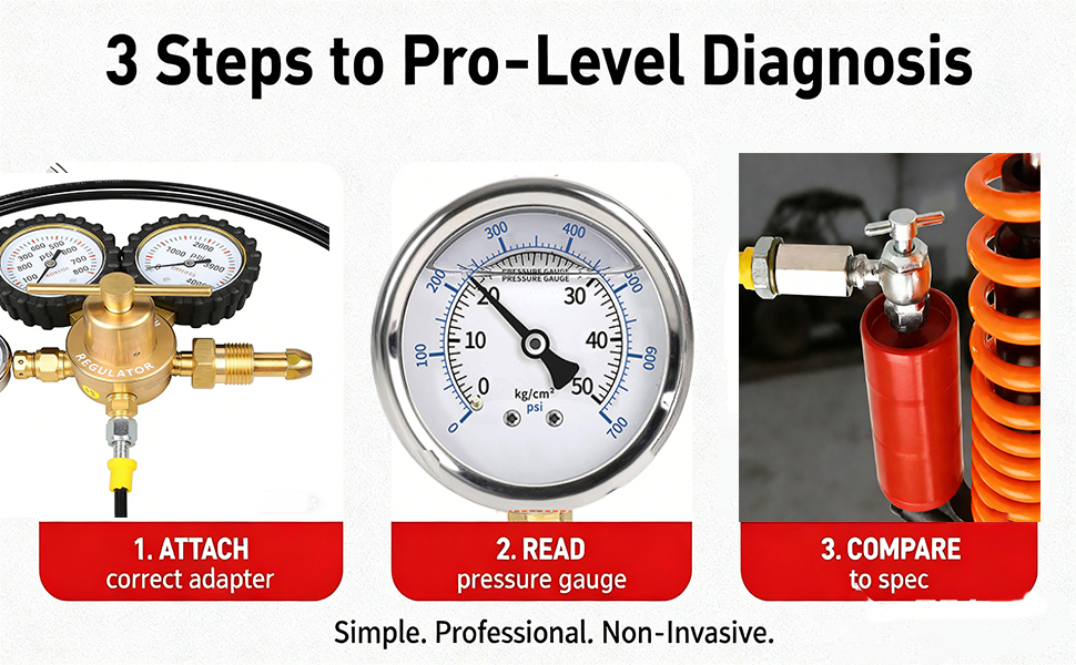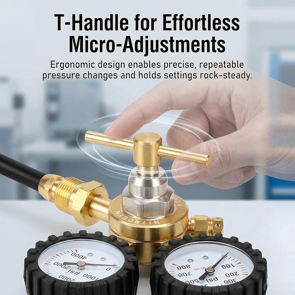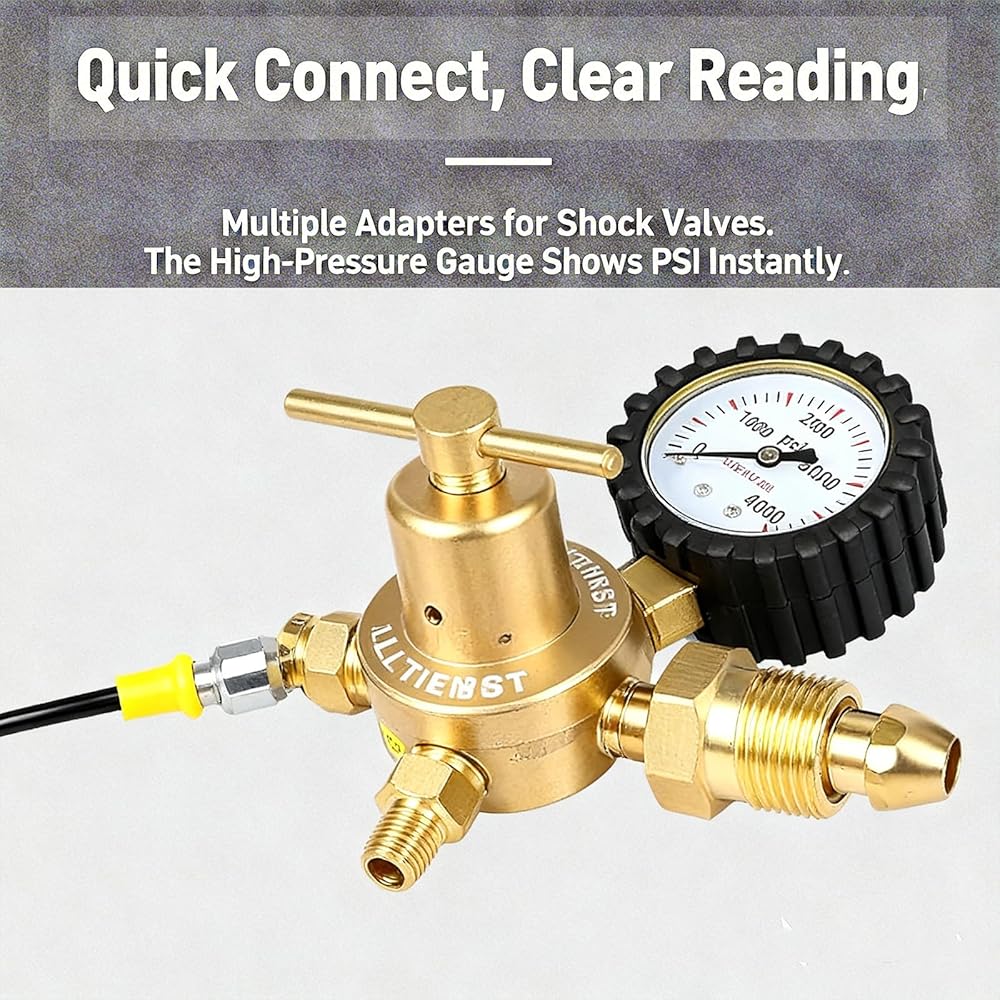 2. ضبط مثل المحترفين: الدقة المتكررة، الضغط غير المتناسق يفسد أداء التعليق. جوهر مجموعة منظم النيتروجين هذه هو مقياسها عالي الدقة ومقبض "T" القابل للتعديل الدقيق، مما يسمح لك بضبط الضغط وتثبيته وصولاً إلى PSI الدقيق - في كل مرة. النتيجة: ضبط متكرر بدرجة احترافية. احصل على التعامل والأداء الأمثل بثقة، املأ بعد التعبئة.
