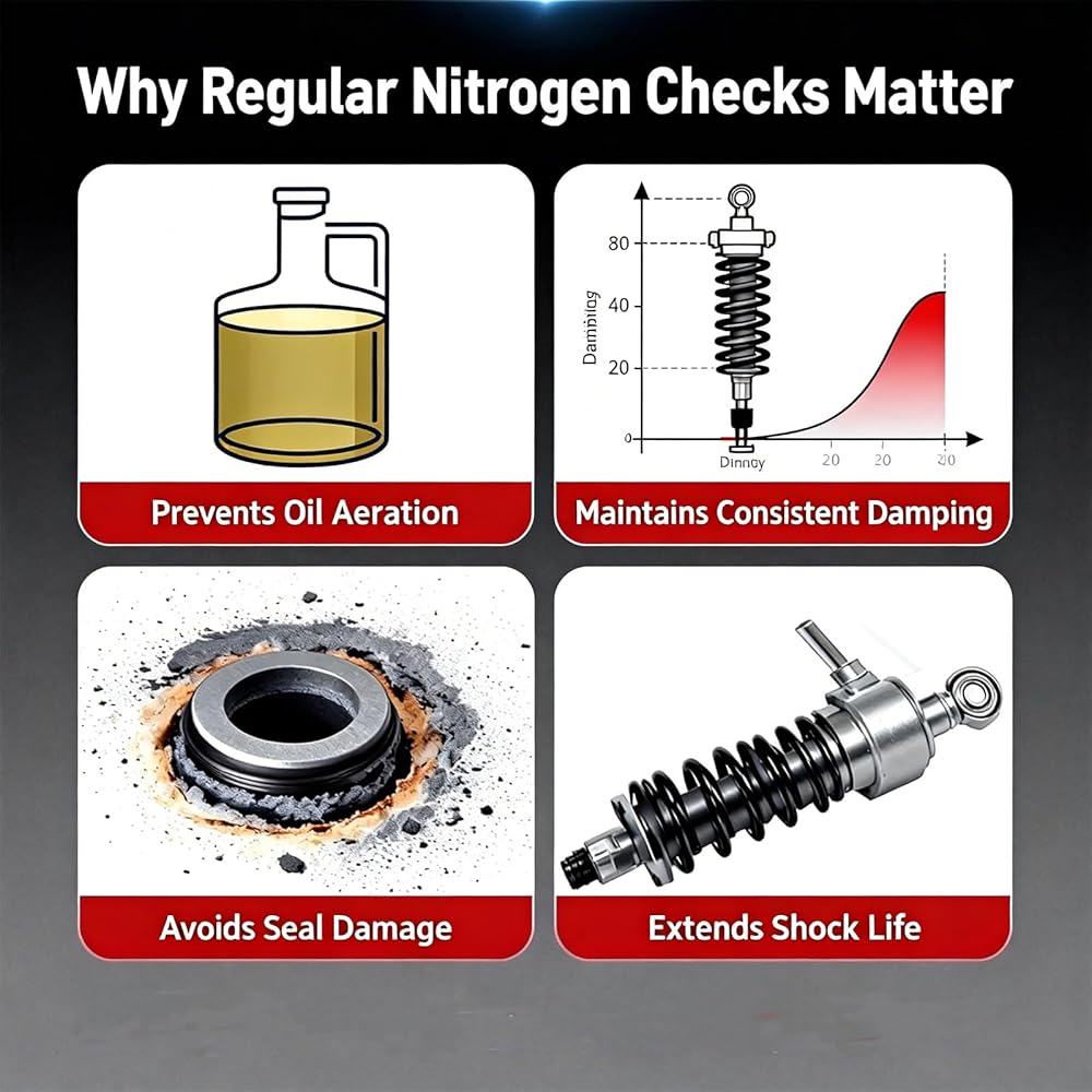 5. الحل الاحترافي الكامل والمبسط هل تعتقد أن الإعداد الاحترافي معقد ويستغرق وقتًا طويلاً؟ تصل مجموعة تعبئة الصدمات بالنيتروجين الكاملة هذه جاهزة للعمل - فهي تتضمن المنظم وخرطوم عدم الخسارة ومحولات المفاتيح في صندوق واحد. النتيجة: نتائج احترافية دون عناء. إنه يمكّن كلاً من المتسابقين وأصحاب الأعمال اليدوية من إجراء صيانة دقيقة لنظام التعليق بسرعة وبساطة.