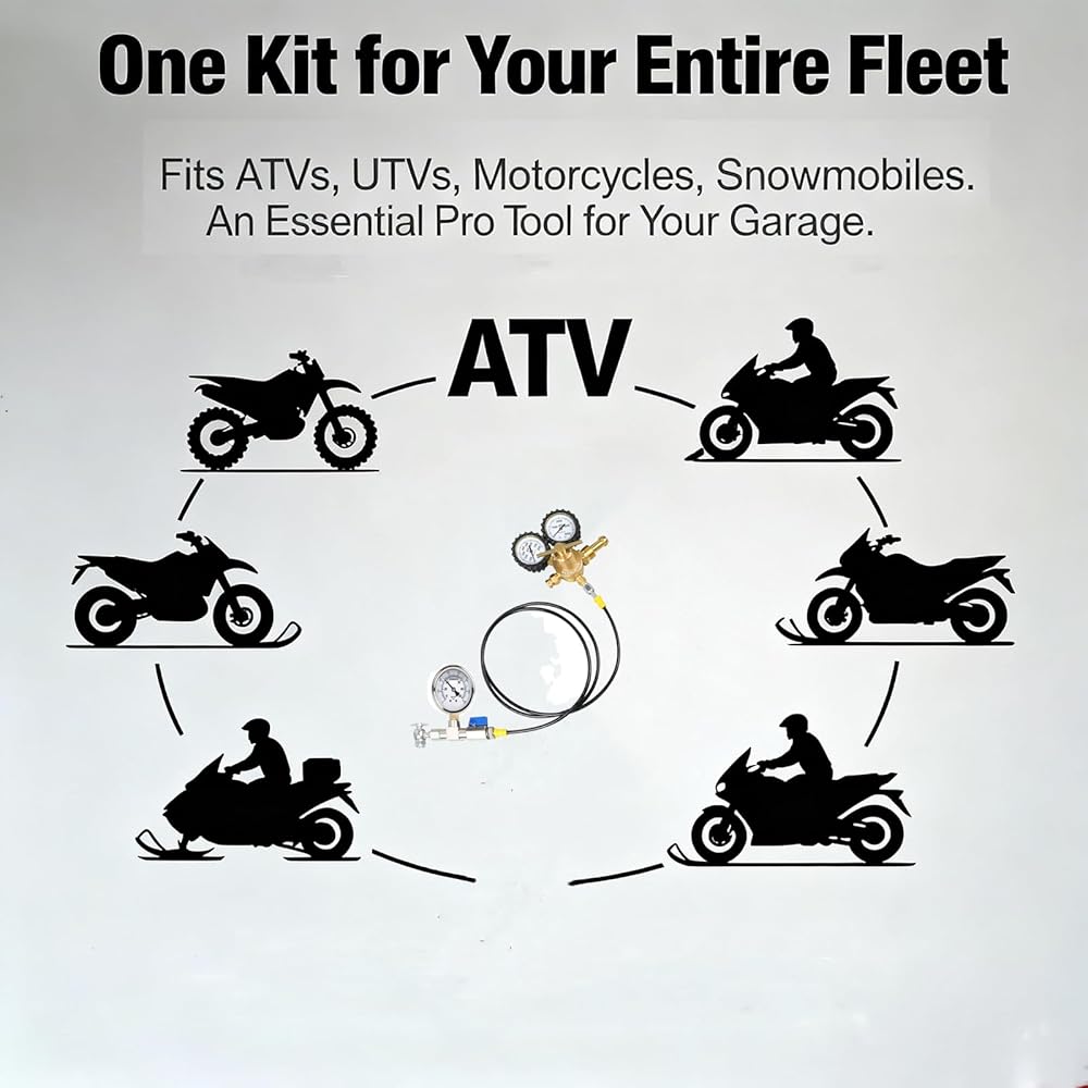 4. تطبيق واسع لماذا تشتري أداة منفصلة لدراجتك ATV وUTV والدراجة الترابية؟ بفضل صمام شريدر القياسي، فإن مجموعة تعبئة الصدمات بالنيتروجين متوافقة عالميًا مع الصدمات المشحونة بالنيتروجين في المركبات على الطرق الوعرة والقضبان الرملية والسيارات عالية الأداء. النتيجة: تنوع لا يهزم. حافظ على أعلى أداء لنظام التعليق عبر أسطولك بأكمله من خلال حل واحد متكامل واحترافي.