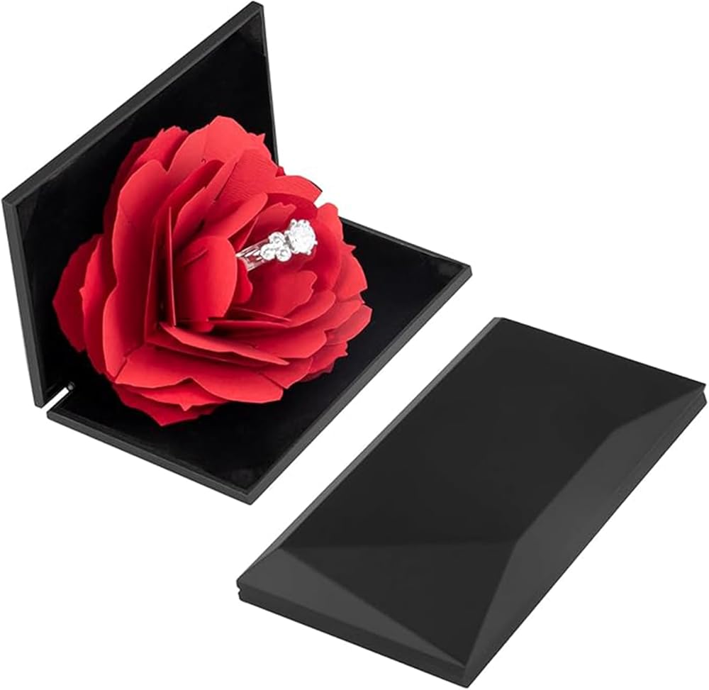 Unique Pop Up Rose Wedding Engagement Rings Box Surprise Jewelry Storage Holder