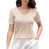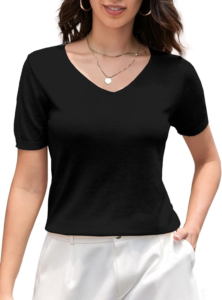 المميزات: سترة محبوكة بأكمام قصيرة، خط رقبة مضلع، وأساور أكمام وحاشية، تصميم بلون نقي يمكن أن يجعلك تبدين ساحرة