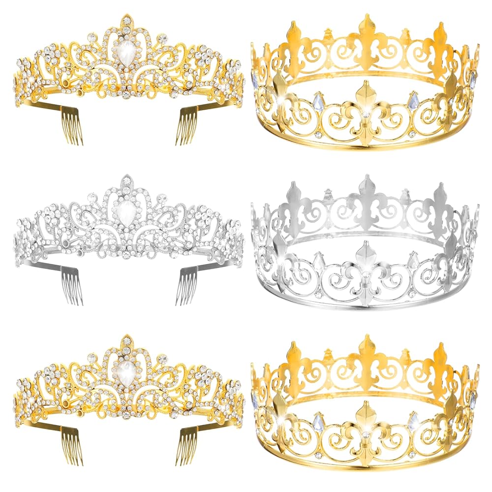 【Package Contents】You will receive 6 prince and princess crowns, available in gold and silver. The ample quantity meets your daily use and replacement needs, providing you with a wide range of decorative options.