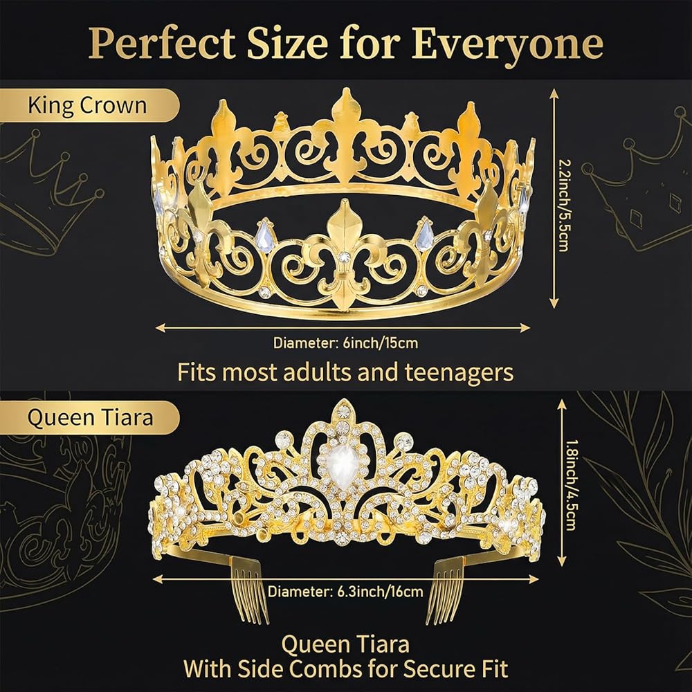 【Suitable Size】The crowns and headpieces are available in two sizes: approximately 17 x 5 cm / 6.7 x 2 inches and 14 x 5.5 cm / 5.5 x 2.2 inches. The suitable size fits most people and age groups, providing a comfortable wearing experience. Experience
