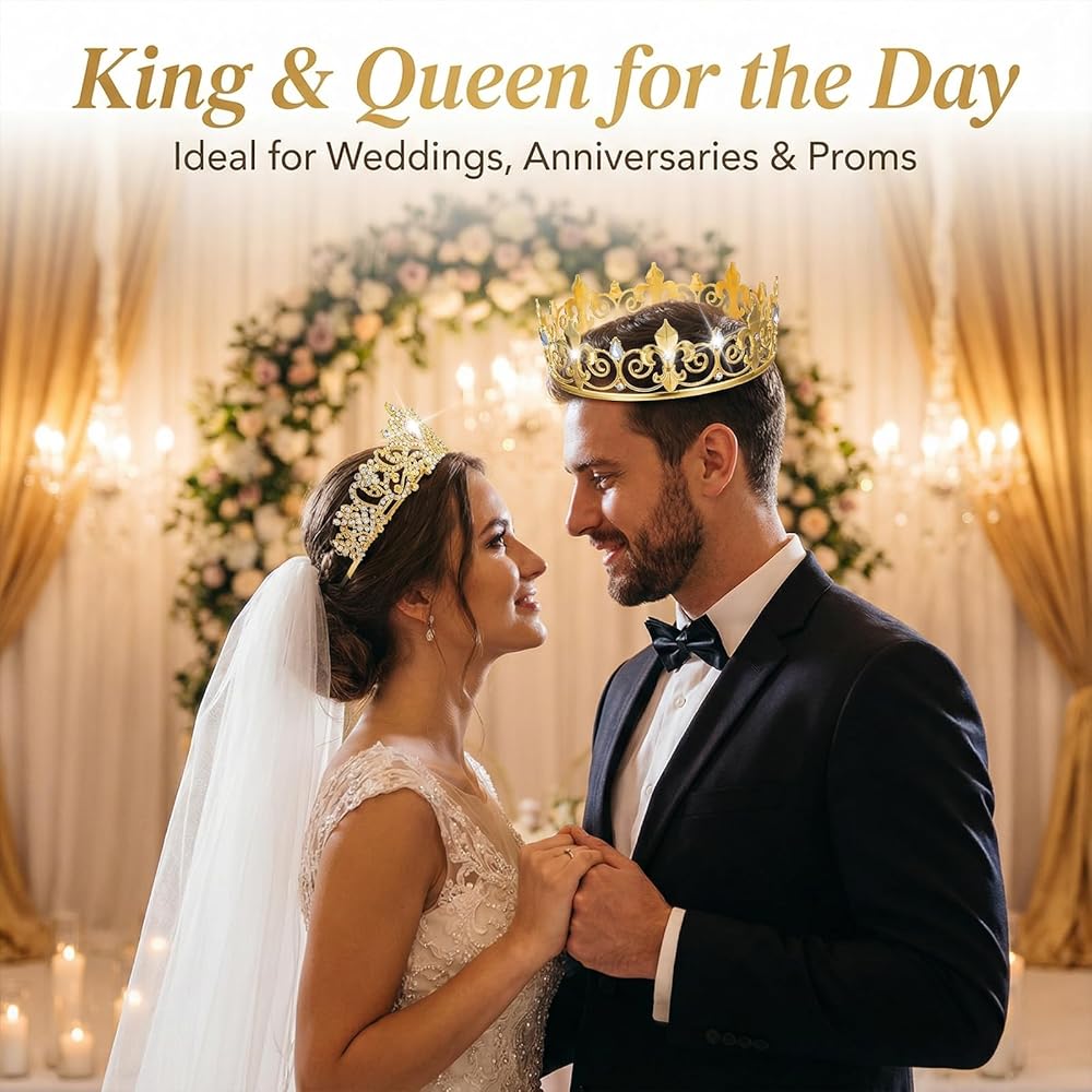 【Premium Alloy Material】This crown is made of premium alloy and rhinestones, featuring a hollow design that resists fading, deformation, or breakage. Its Gothic style exudes elegance, cuteness, and charm, making it perfect for couples decorating party outfits.