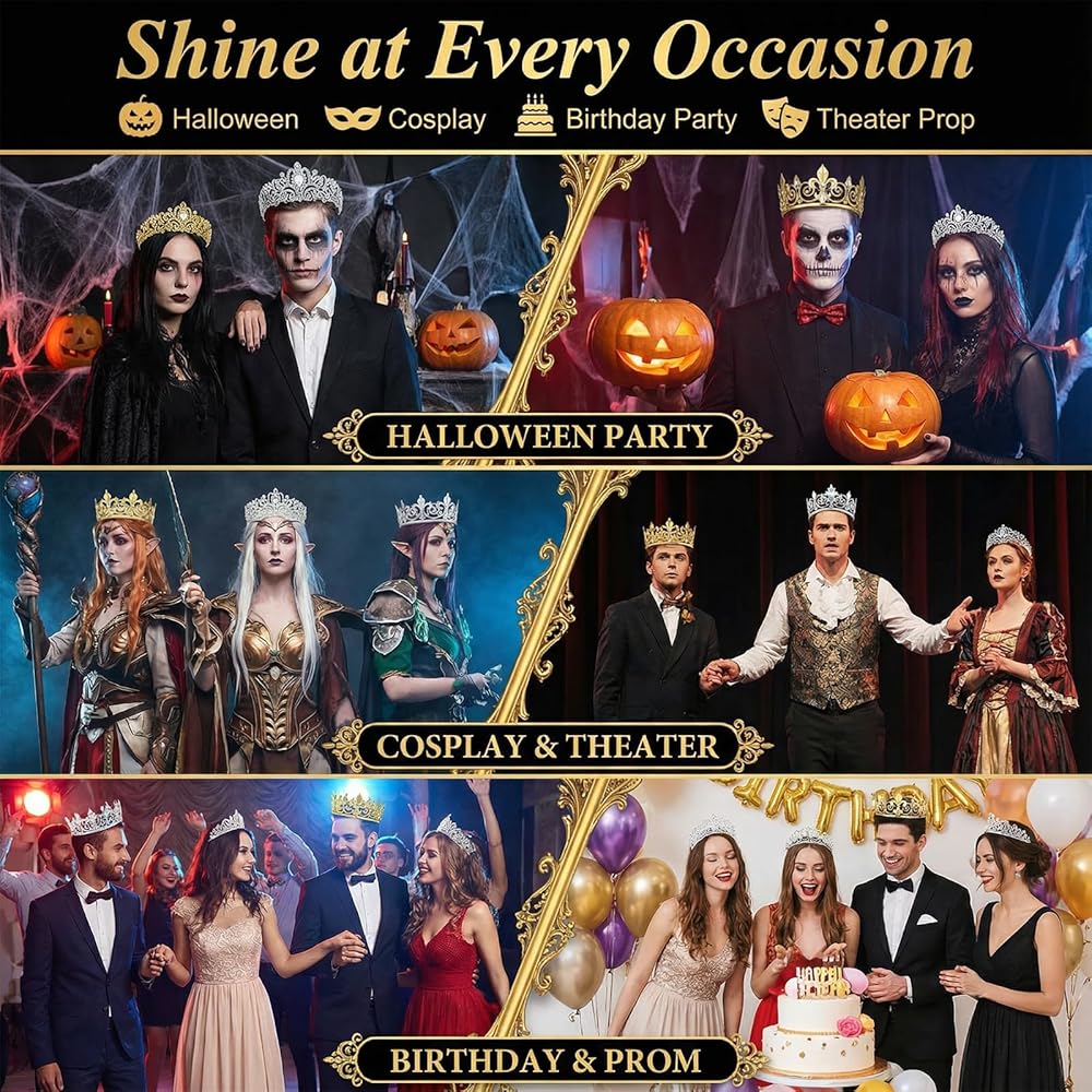 【Versatile Item】The unisex crowns feature classic silver and gold designs, easily matching various outfits. Whether you're wearing a brightly colored performance costume or a simple everyday look, they are a stylish accessory choice.