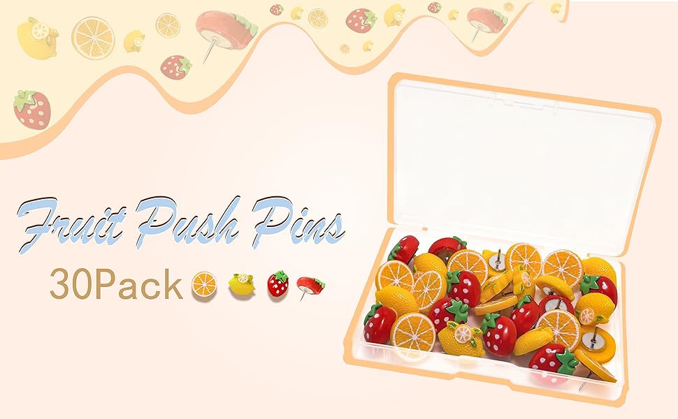الفاكهة تحت عنوان الإبداعي، 30 دبابيس دفع لطيف للبرتقال والليمون والفراولة دبابيس دفع الزخرفية للوحات الإعلانات جدران الصور لوحات الفلين وأجهزة الكمبيوتر المحمولة