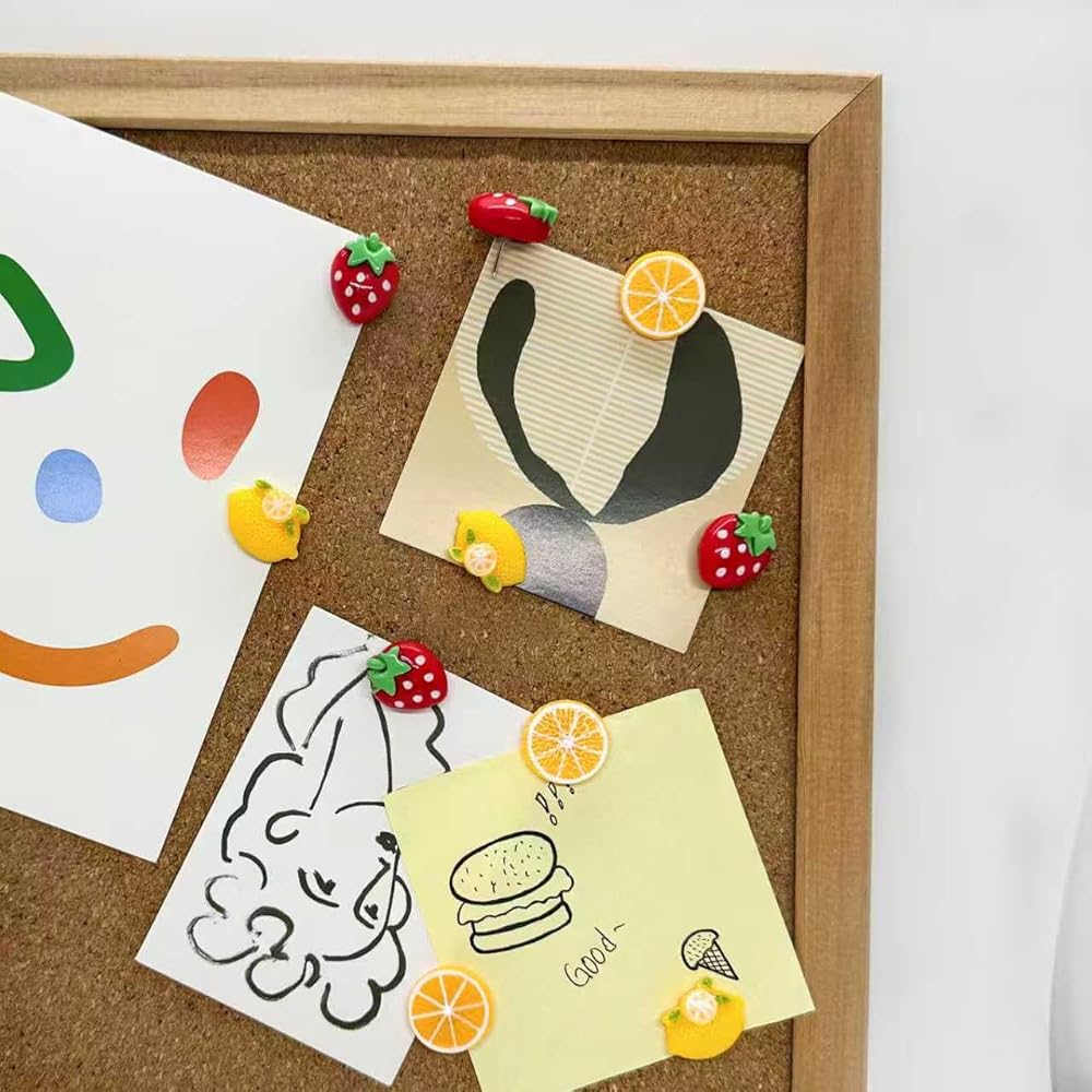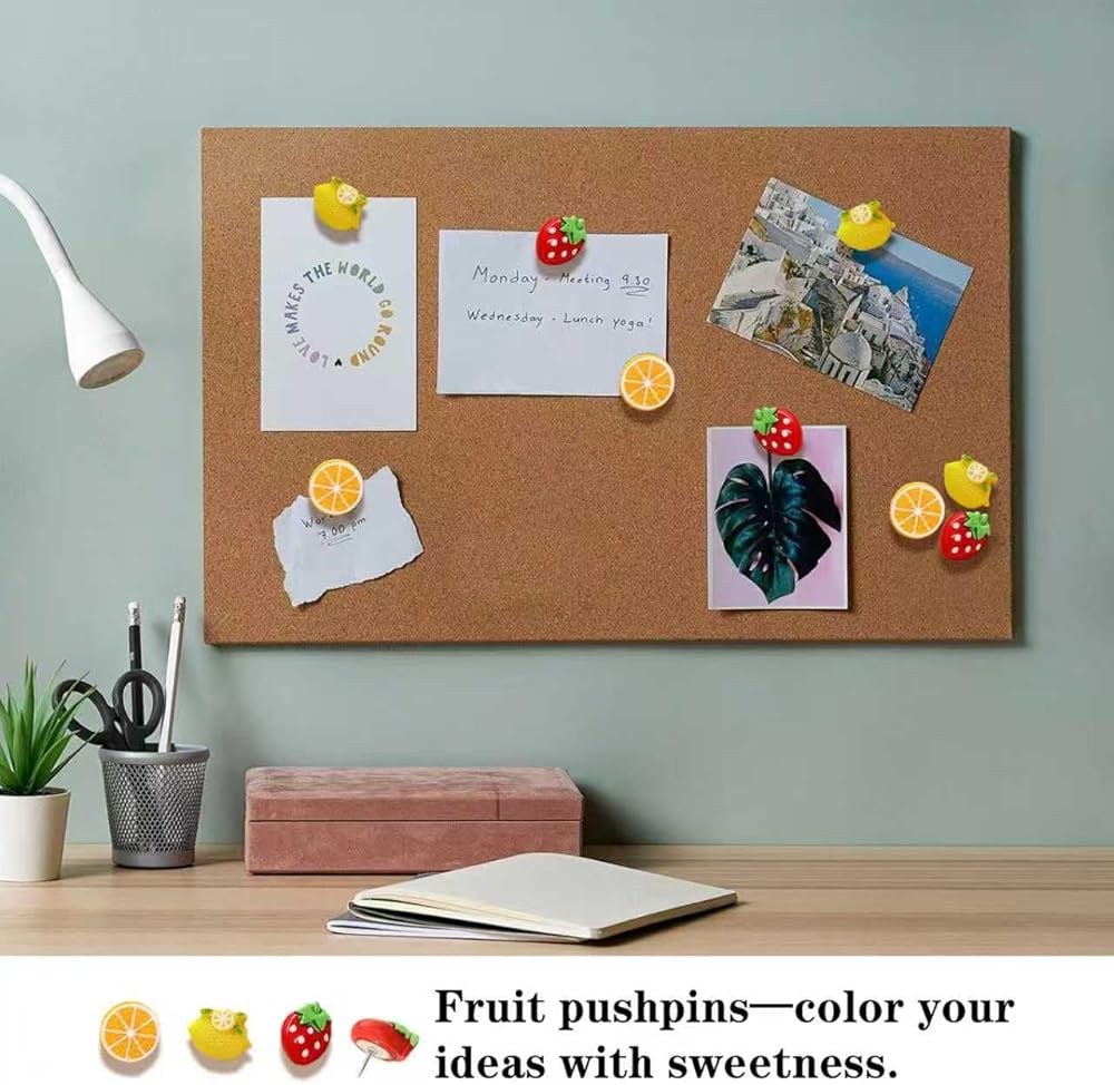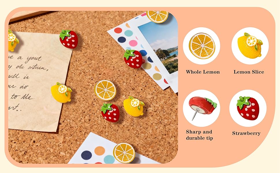 آمنة وعملية: بالإضافة إلى جاذبيتها الزخرفية، فإن دبابيس الدفع هذه متينة وسهلة التشغيل. إنها تحمل الأوراق أو الصور أو البطاقات بإحكام في مكانها، مما يضمن بقاء شاشات العرض الخاصة بك أنيقة وآمنة. يمزج تصميم الفاكهة اللطيف بين الأداء الوظيفي والأناقة، مما يجعلها ضرورية للمنزل أو المكتب أو الفصل الدراسي.