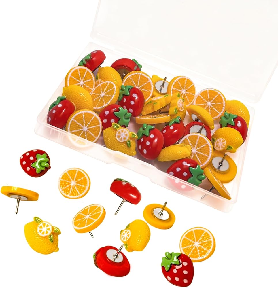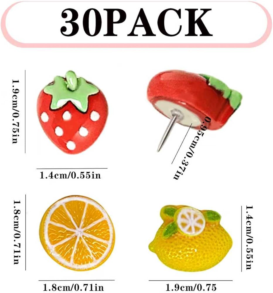 مجموعة مكونة من 30 قطعة: تأتي مع 30 دبوس دفع لطيف، توفر هذه المجموعة كمية كبيرة لتلبية جميع طلبات التزيين والتنظيم الخاصة بك. سواء كنت تقوم بتثبيت الصور أو الملاحظات أو التذكيرات، سيكون لديك ما يكفي من الدبابيس التي تحمل طابع الفاكهة للتعامل مع مشاريع متعددة دون عناء.