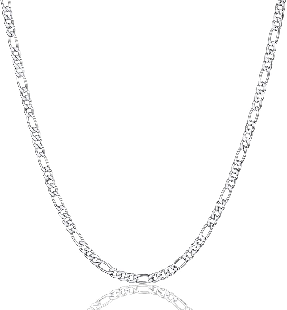ثبات لون يدوم طويلاً: مع مادة الفولاذ المقاوم للصدأ عالية الجودة، فإن قلادات سلسلة فيجارو الخاصة بنا مقاومة للغاية للخدوش وتغير اللون. لا تتطلب هذه السلاسل للرجال الإزالة أثناء أي نشاط - سواء كان السباحة أو الاستحمام أو الرياضة