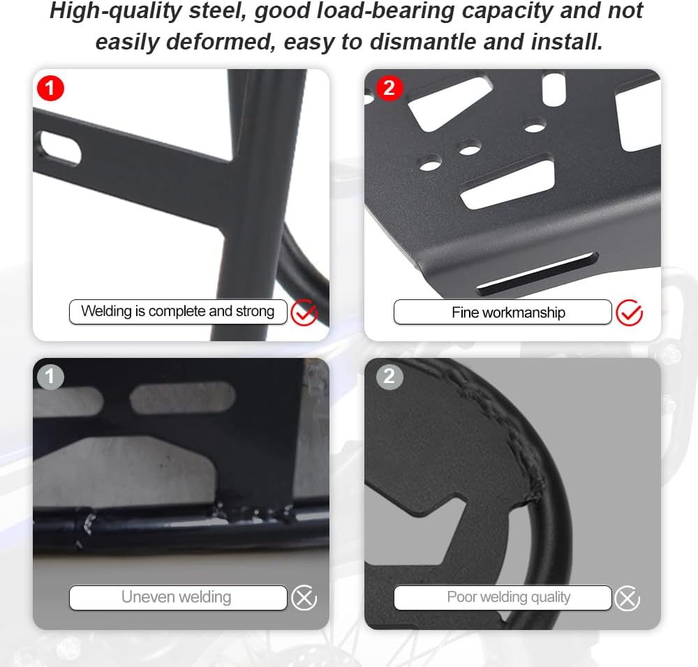-Effortless Installation: Our rack luggage and pannier rack can be easily installed on your motorcycle without hassle or complicated tools. Equipped with screw accessories and installation instructions.
