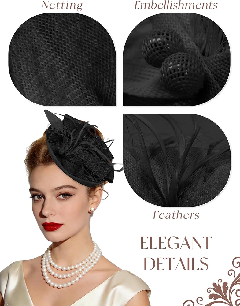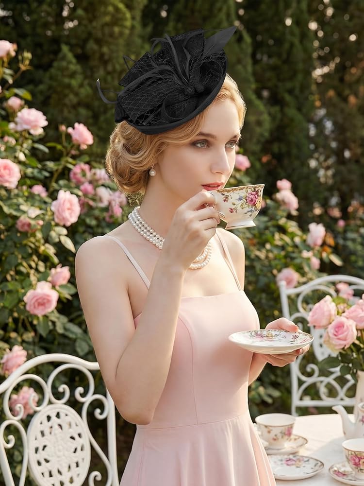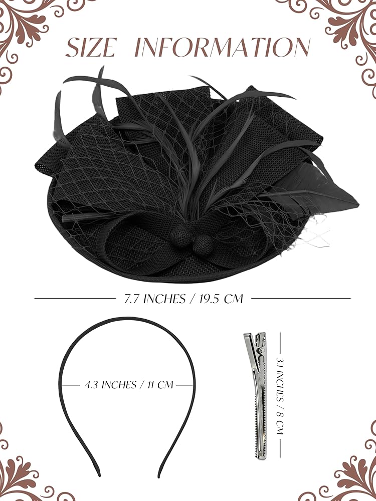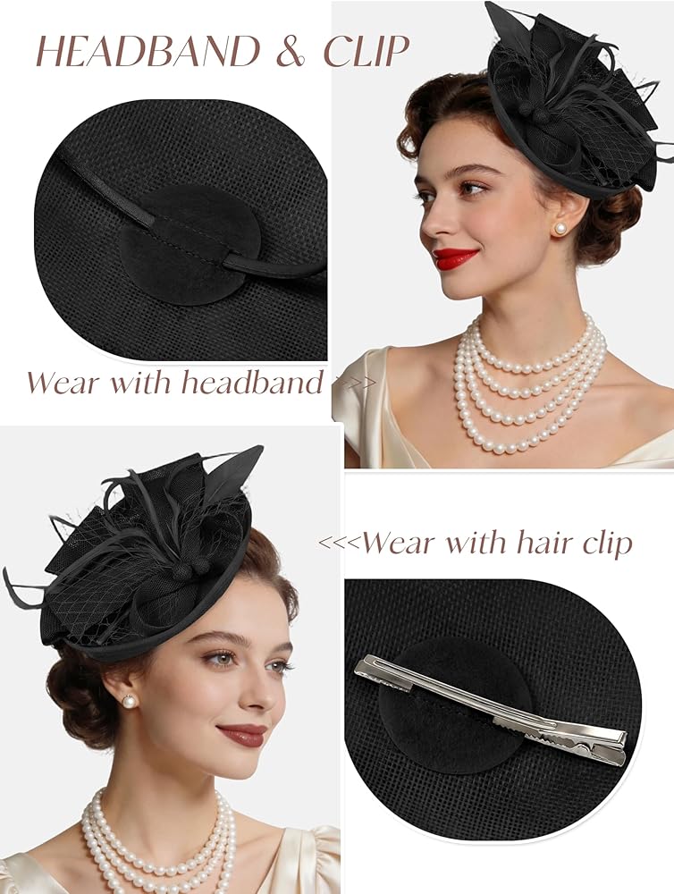 Dual-Wear Design: Designed for convenience, this fascinator comes with both a hair clip and a headband, offering two wearing styles and allowing you to easily secure the fascinator according to your hairstyle and preference.