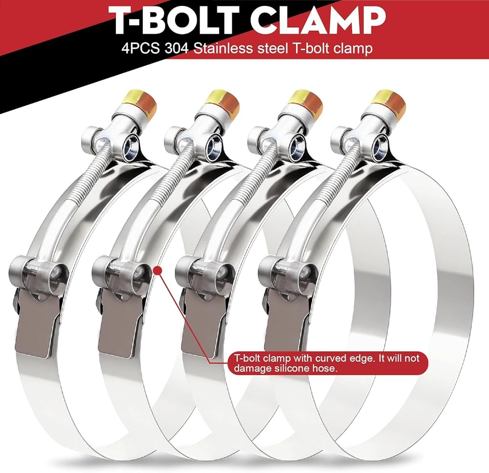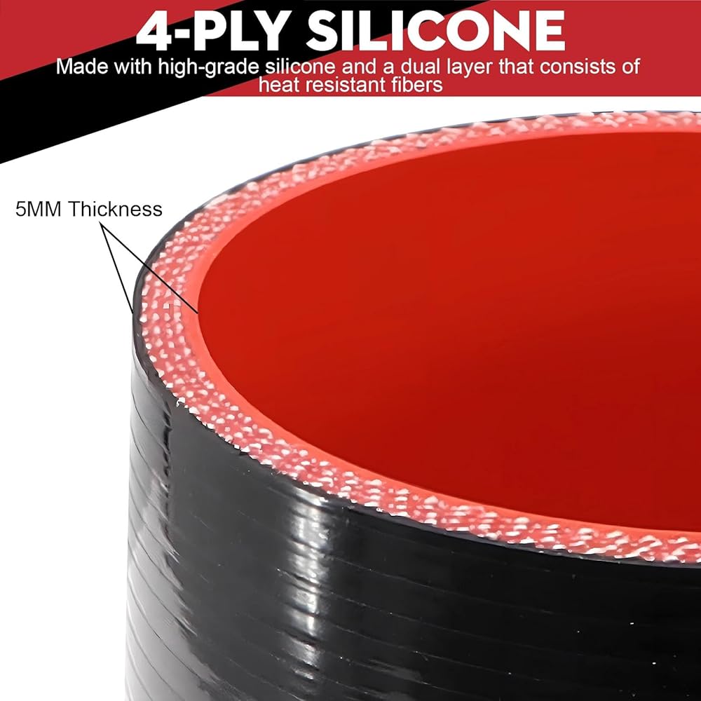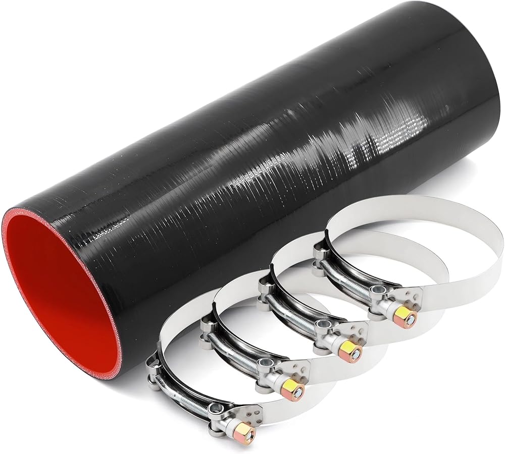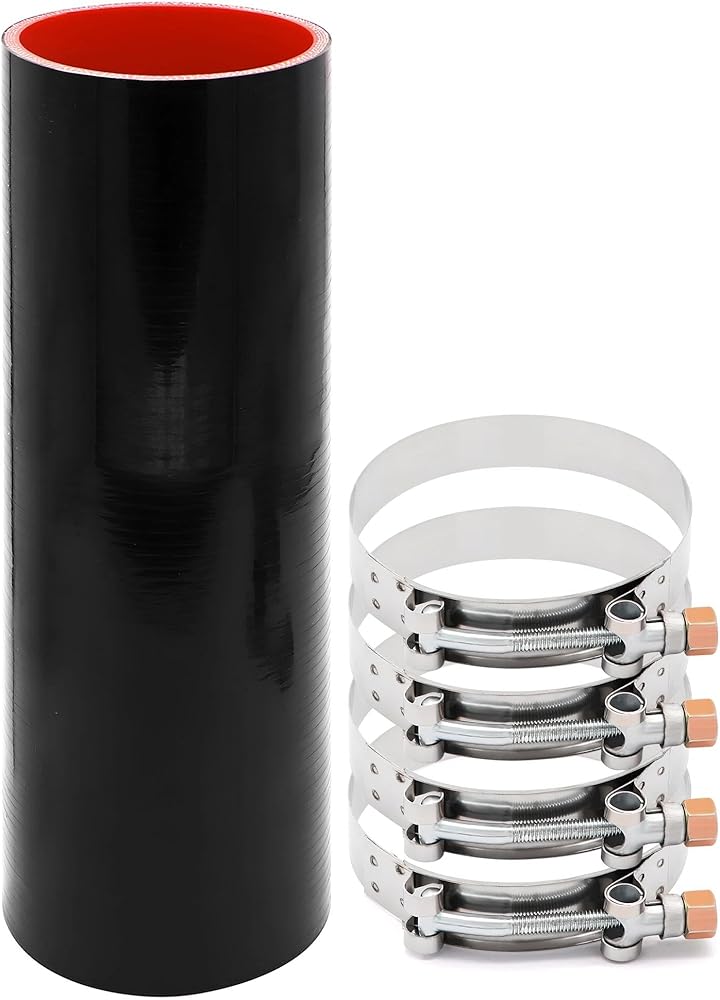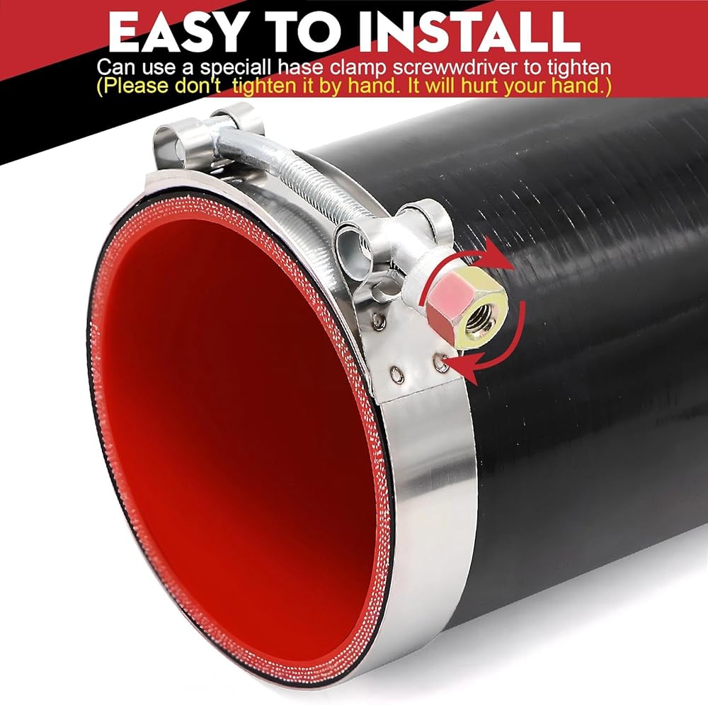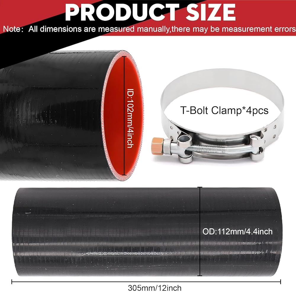 وصلة مستقيمة 4 بوصة (102 مم) خرطوم سيليكون 4 طبقات تقوية 5 مم سمك 12 بوصة طول، 4 × 12 أنبوب تبريد داخلي مدخل هواء أنبوب توربو مع 4 قطع مشابك من الفولاذ المقاوم للصدأ على شكل حرف T