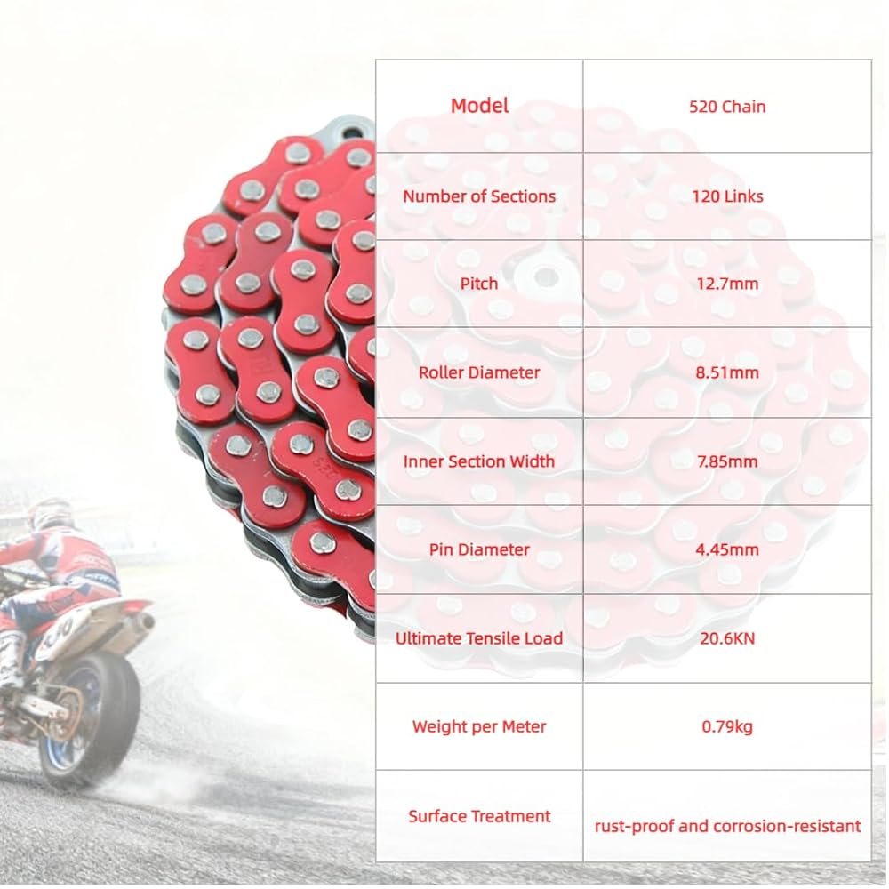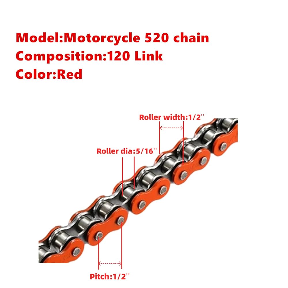 سلسلة دراجات نارية DREAM MOTION 520 120 وصلة ثقيلة عالية القوة وكبيرة الإزاحة سلسلة دوارة أجزاء رياضية لسوزوكي كاواساكي دوكاتي CR250 CSR 450cc ATV رباعية ملحقات الدراجة الترابية، أحمر