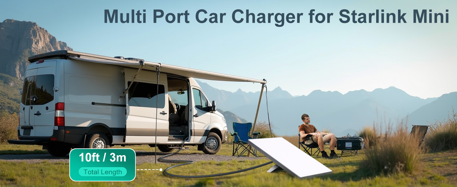 • كابل طاقة مخصص بتيار مستمر 12 فولت لـ Starlink Mini: تم تصميم كابل Starlink الصغير خصيصًا لملحقات أطباق Starlink mini وStarlink Mini لضمان اتصال موثوق بمصدر طاقة 12 فولت - 24 فولت أثناء استخدام Starlink Mini في مركباتك مثل السيارات والشاحنات والمركبات الترفيهية والقوارب. محول ولاعة السجائر في السيارة مزود أيضًا بـ 3 منافذ شحن مستقلة للسيارة (موصلات USB-A وUSB-C)، مما يتيح لك شحن الأجهزة الأخرى بسرعة دون أي تأثير على السرعة.
