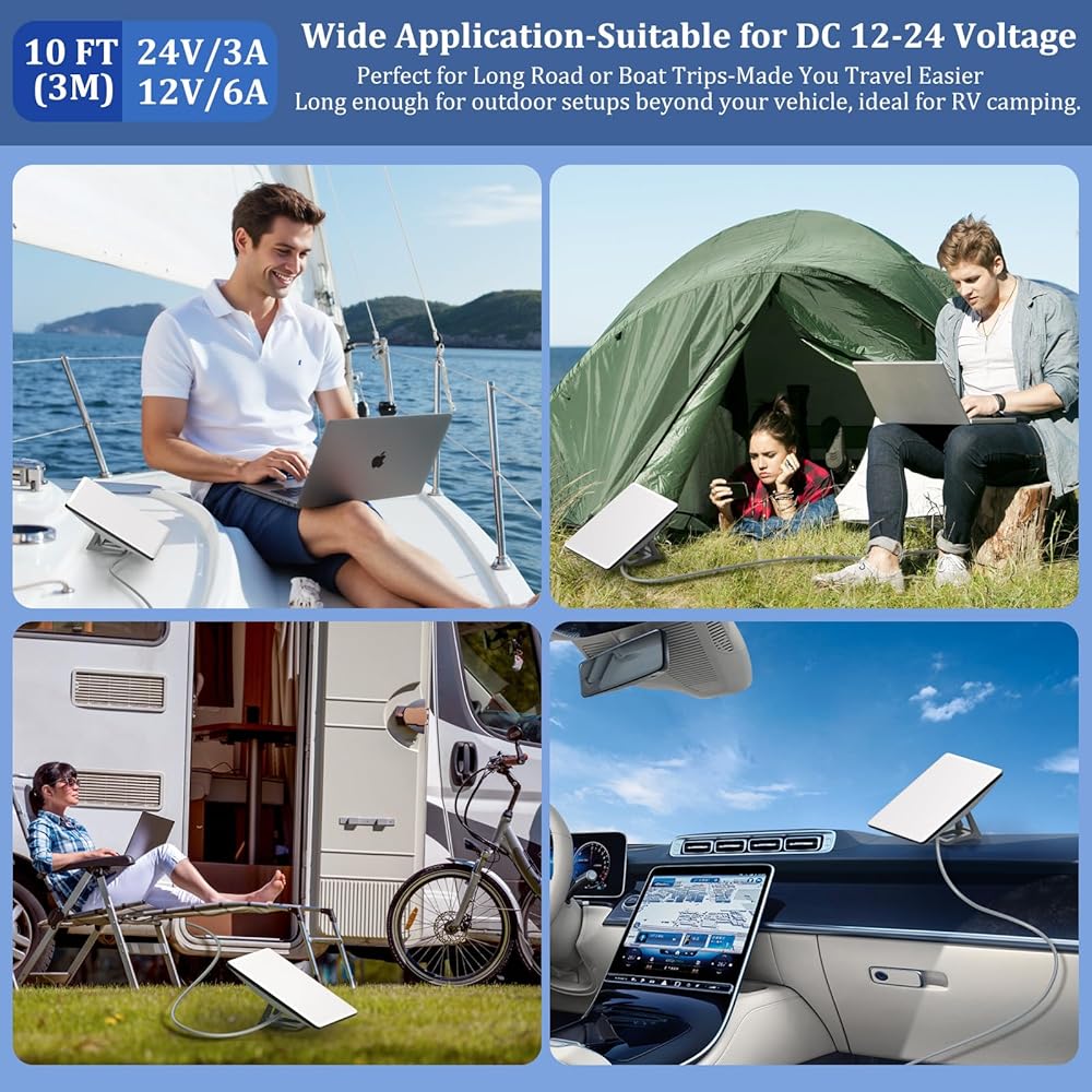 • كابل طاقة DC صلب بطول 10 أقدام و18AWG: مصنوع من سلك محمي 18AWG، كابل الطاقة Starlink Mini متين بما فيه الكفاية ويدوم لفترة طويلة. من خلال العديد من الاختبارات والأبحاث، قمنا بتصميم كابل Starlink Mini dc بطول 10 أقدام/3 أمتار. طويلة بما يكفي للإعدادات الخارجية خارج سيارتك، مثالية للتخييم في المركبات الترفيهية. يمكن أن يسمح لك بشحن طبق Starlink Mini الخاص بك من المقعد الخلفي مع الحفاظ على تشغيل هاتفك وجهازك اللوحي بمنافذ USB الأخرى في المقعد الأمامي.
