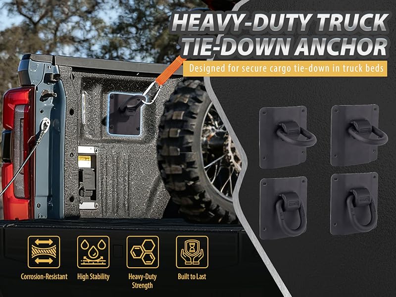 • 【مجموعة مرساة البضائع الكاملة المكونة من 4 قطع】تتضمن 4 مثبتات شديدة التحمل وأدوات تثبيت لإنشاء نقاط آمنة متعددة في سرير شاحنتك ومنع نقل البضائع أثناء النقل.