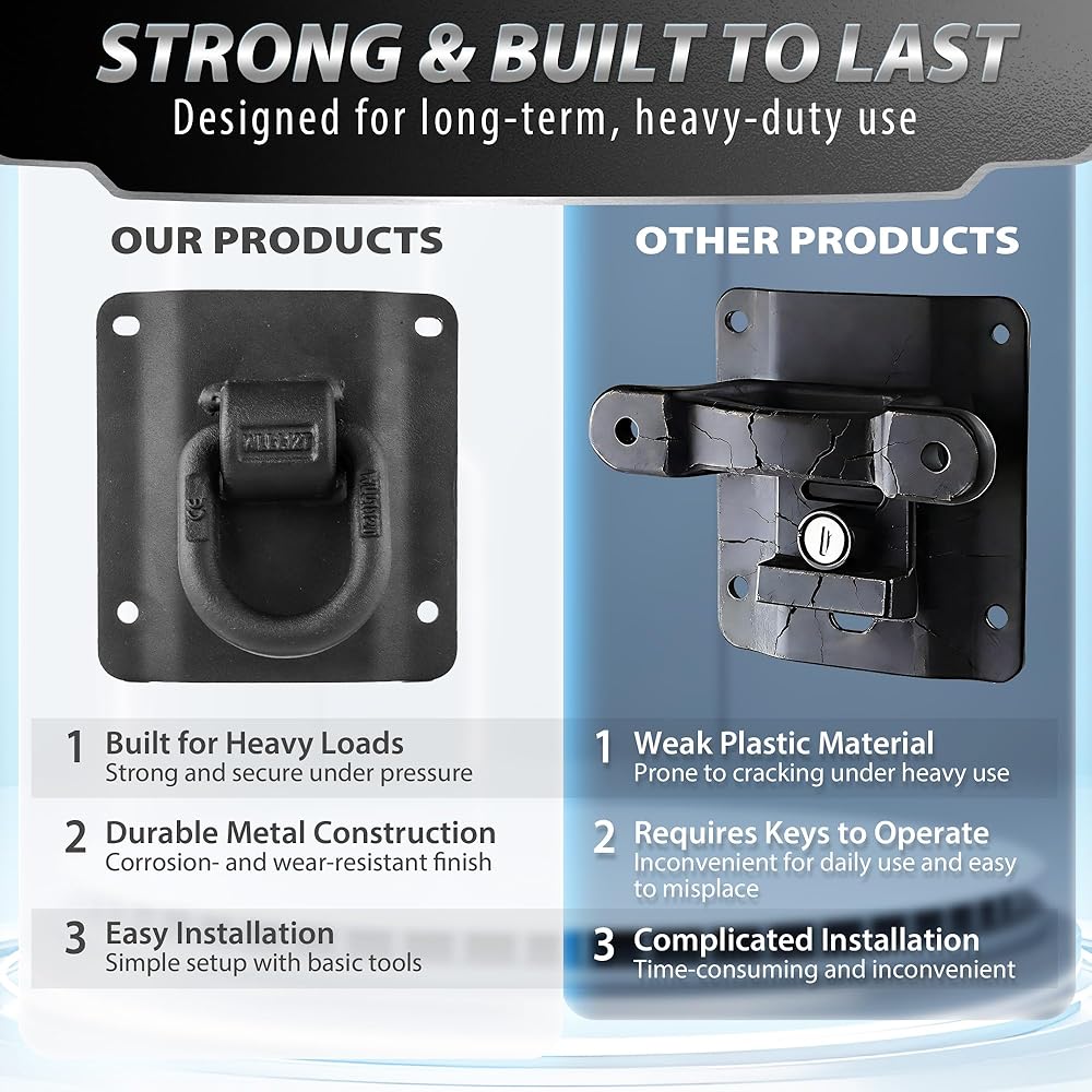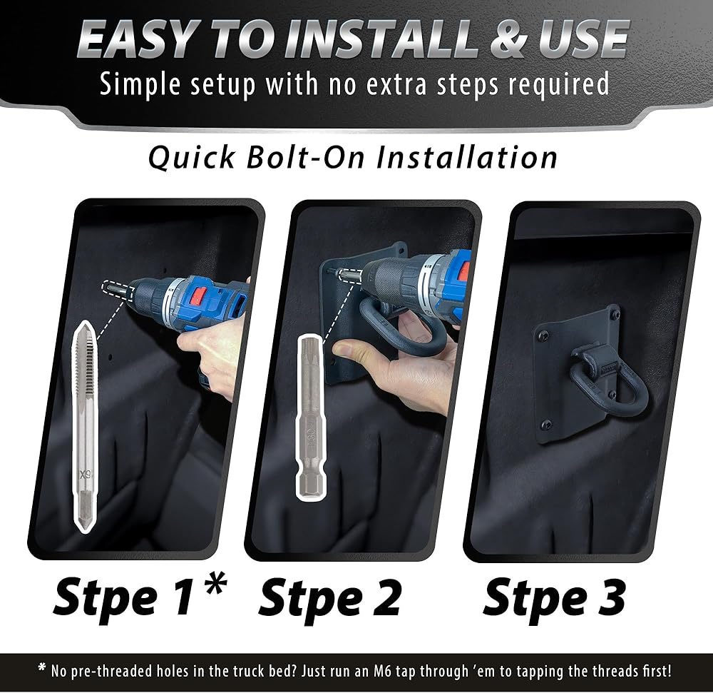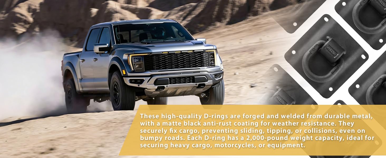 • 【يناسب شاحنات فورد 2015-2025】مصممة لتناسب أسِرَّة شاحنات Ford F-150 وF-250 وF-350 ورابتور (2015-2025). مثبتات ربط البضائع البديلة المثالية لتأمين المعدات والأدوات والمعدات.