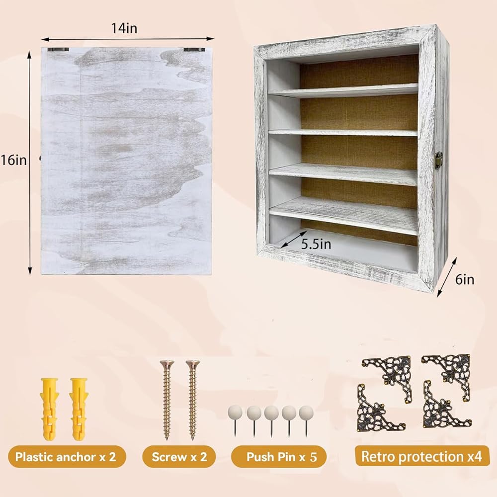 • 16x14x6-inch size with cork backing in this deep display case provides an easy way to pin up a large photo, a collage, postcards, tickets, artwork, pressed flowers, and more keepsakes ,Includes 5 Push pins