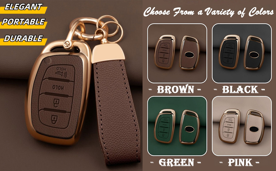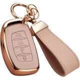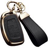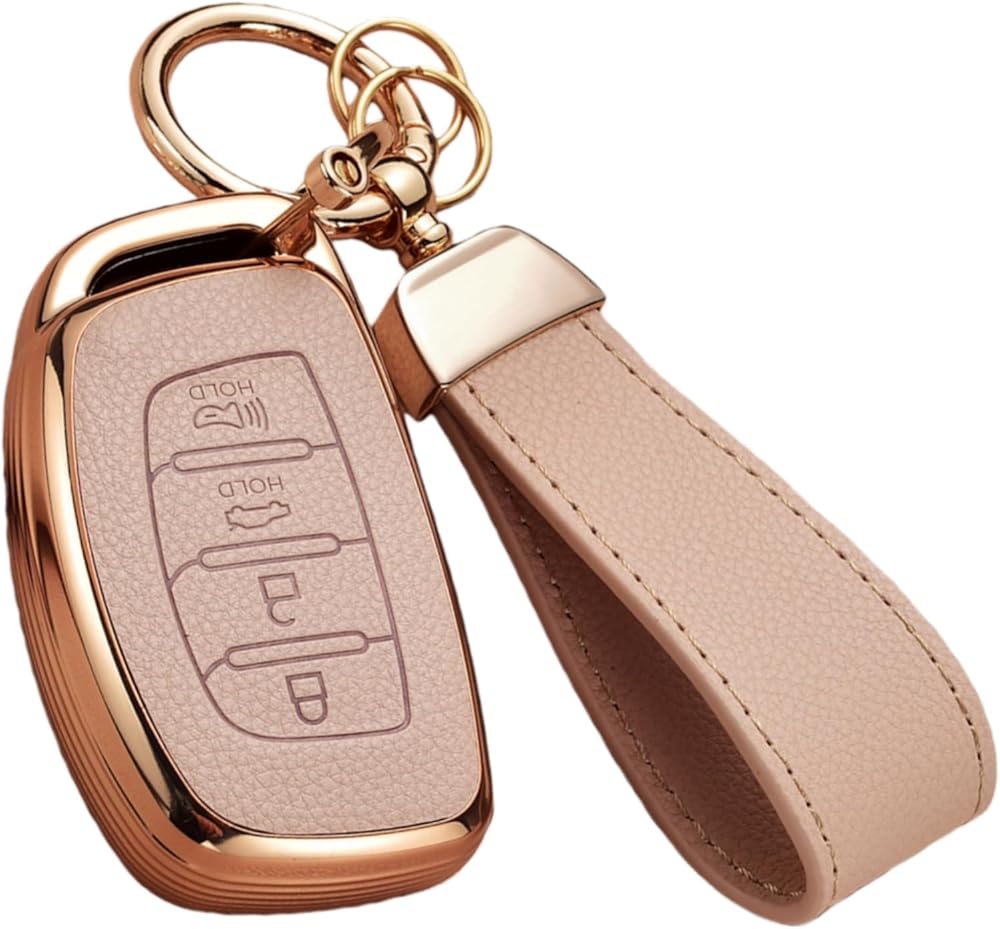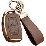 غطاء مفتاح Fob لشركة Hyundai مع سلسلة مفاتيح، جلد علوي + غطاء غطاء مفتاح ناعم من مادة TPU لسيارة Hyundai Elantra GT Ioniq Sonata Tucson 4 أزرار (بني) in Kuwait