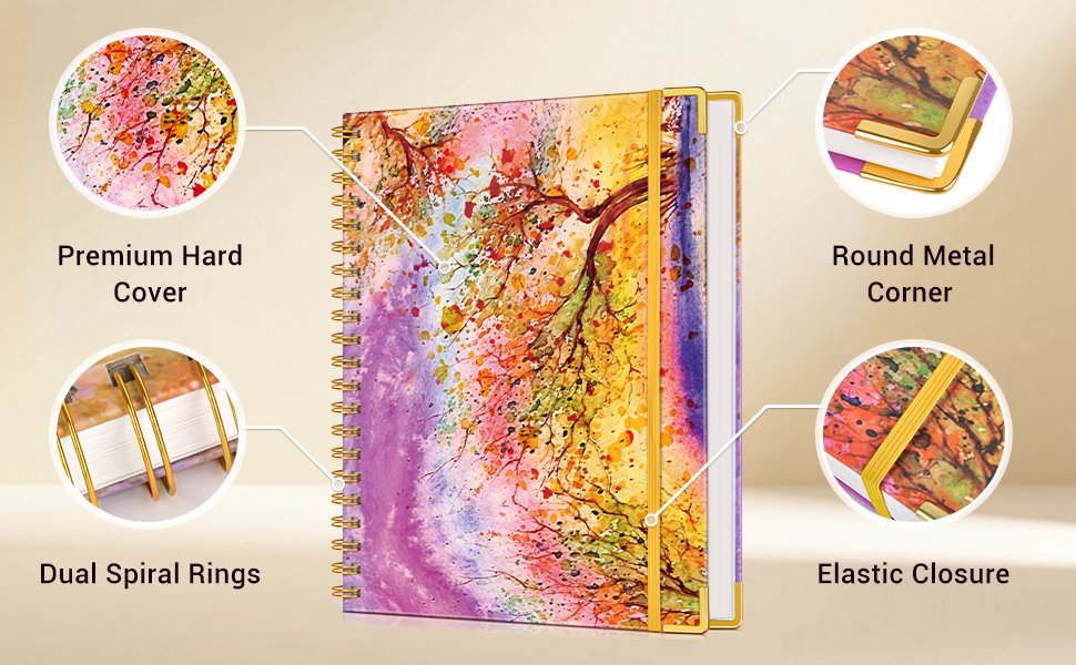 【تصميم لطيف لشجرة الخريف】 تتميز مجلة دفتر الملاحظات الحلزونية اللطيفة للنساء بتصميم شجرة الخريف الجميل، شجرة الخريف الملونة اللامعة جميلة جدًا تعني أن الحياة حية في كل شيء، شجرة لطيفة ترمز إلى الأمل والإيمان. لا تحمي الزوايا المعدنية الذهبية الأربعة الجمال والرائعة فحسب، بل يمكنها أيضًا حماية أجهزة الكمبيوتر المحمولة بأمان من الاصطدام والتآكل. دع هذه المجلة الحلزونية الجمالية تشهد حياتك الرائعة، سوف تحبها!