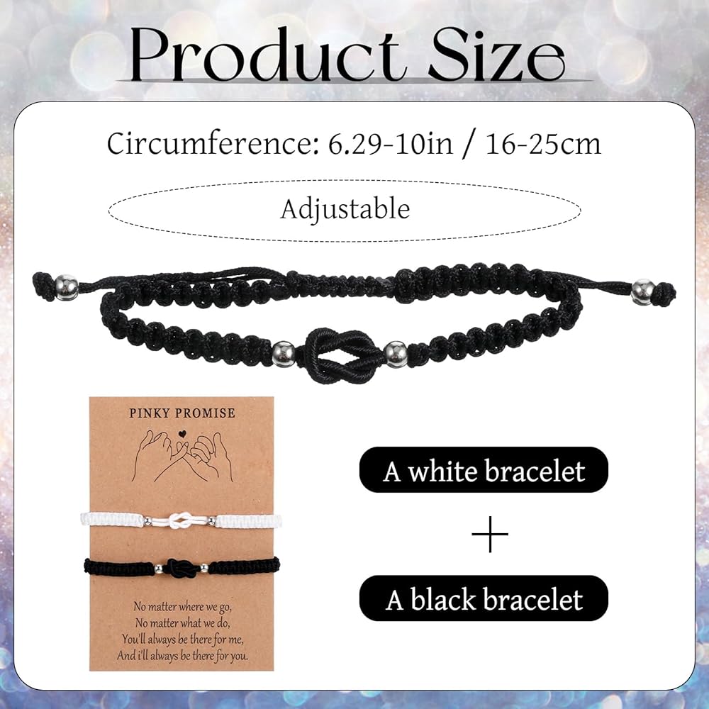【Thoughtful design】The central knot represents a promise—forever tied,forever true.Our matching bracelets come with a friendship card reminding you and your friend to always stay connected no matter the distance