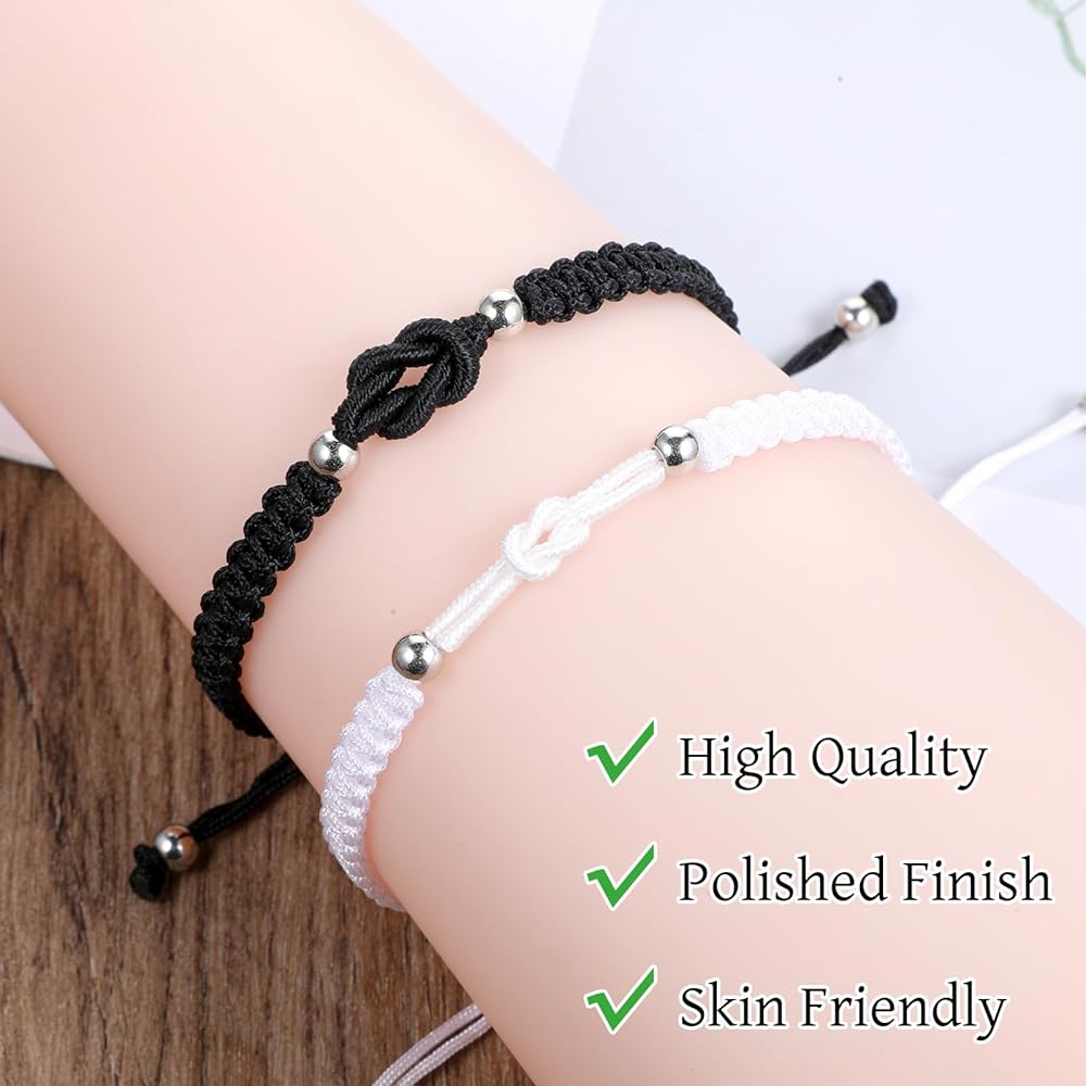 【Package Included】You will receive 2pcs of knot bracelet in 2 colors:black,white,one for you and one for your best friend or boyfriend/ girlfriend