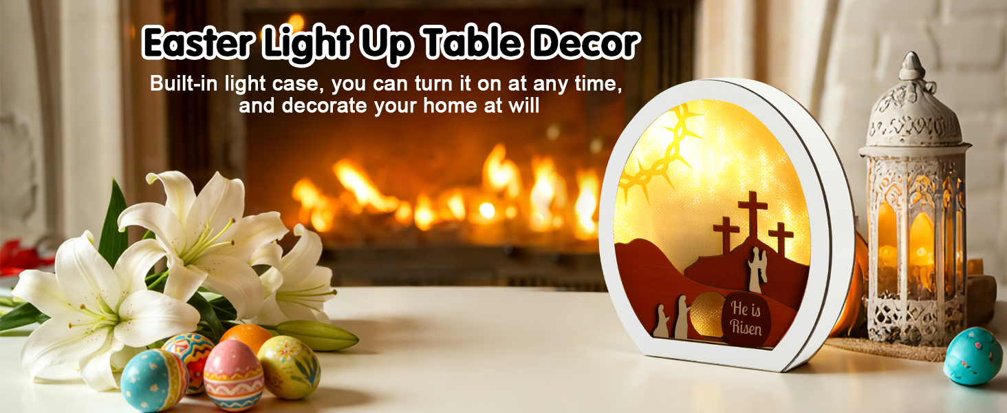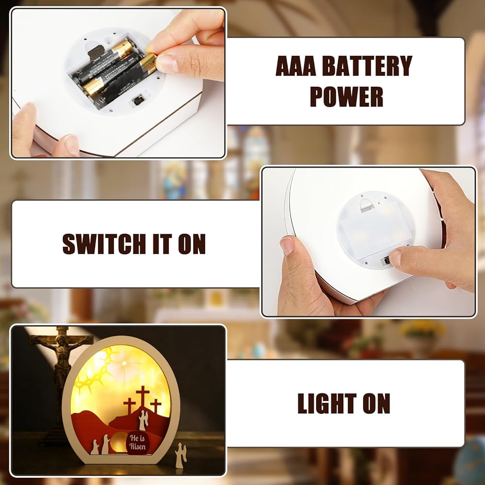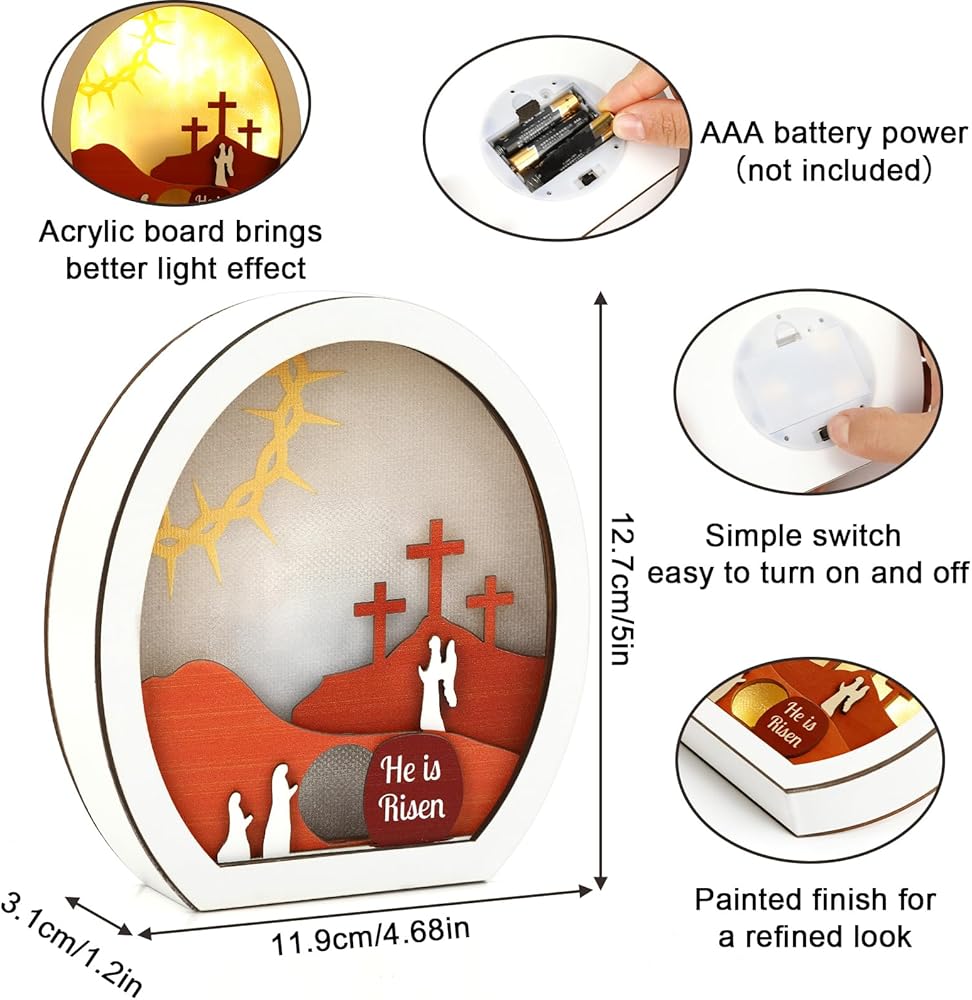 ديكور مضيء لعيد الفصح من He is Risen، مشهد القيامة الخشبي ذو الطبقات مع مصباح LED، قبر فارغ وصلبان ضوء ليلي، ديكور طاولة عيد الفصح المسيحي للمنزل، الرف، المكتب، زاوية الصلاة