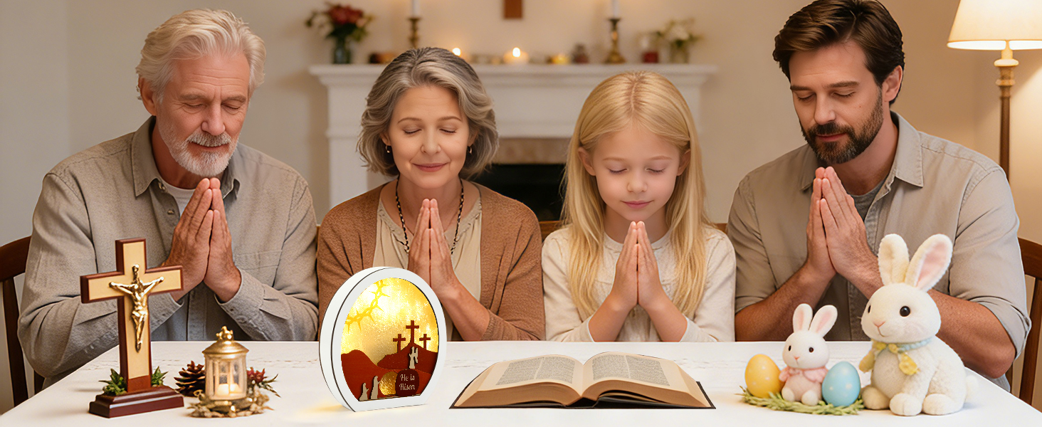• مشهد القيامة ذو مغزى - احتفل بيسوع القائم من الموت مع هذا العرض الخشبي ذو الطبقات الجميلة، والذي يتميز بالقبر الفارغ، وشخصيات الشهود، وثلاثة صلبان على التل في أجواء صباح عيد الفصح الهادئة