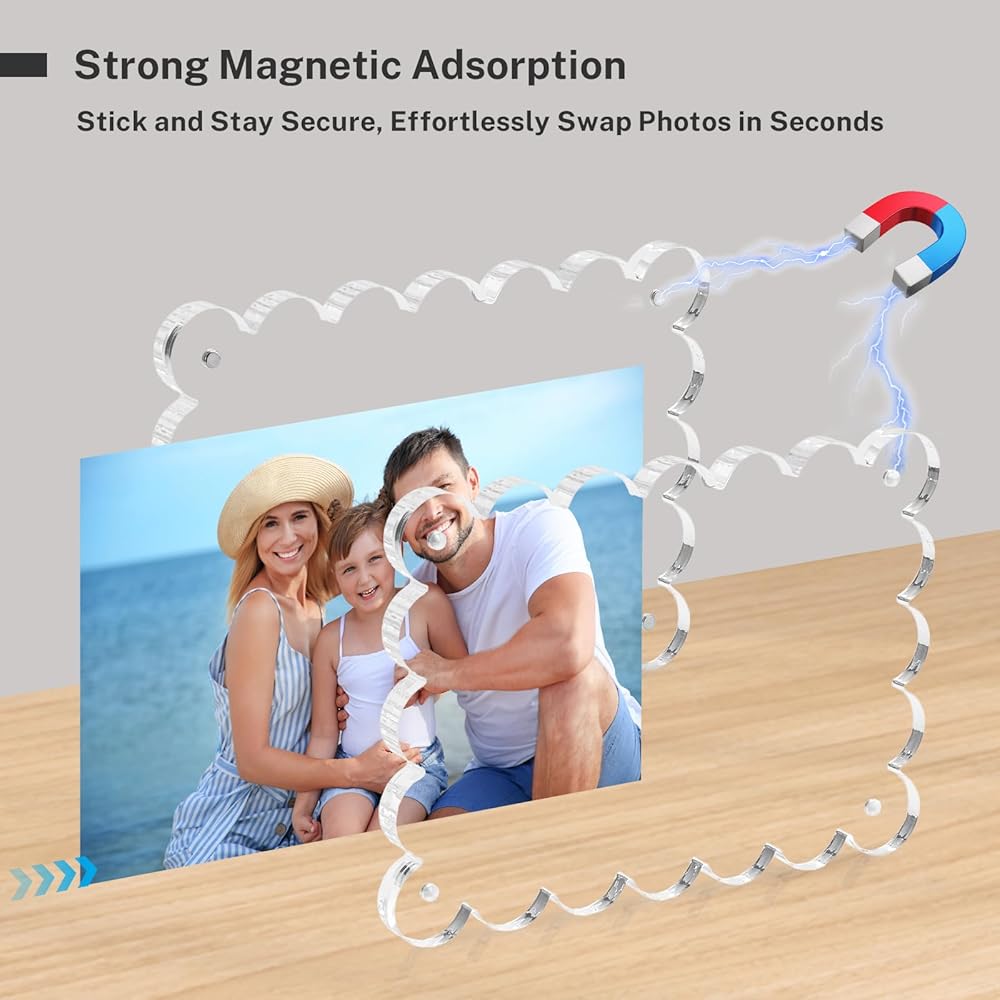 【قفل مغناطيسي فوري: إطار 5x7】 مغناطيسات قوية تمكنك من التثبيت الفوري والآمن. ما عليك سوى إدخال الصور في هذه الإطارات مقاس 5 × 7 لتثبيتها بإحكام. اقلب بسهولة لعرض المحتوى على الوجهين، وهو مثالي للتذكارات متعددة الصفحات أو المجموعات الدوارة في إطاراتك مقاس 5 × 7. الإغلاق المغناطيسي المتين لإطارات الصور مقاس 5x7 هذه يظل محكمًا بدون مواد لاصقة تلحق الضرر بالأشياء الحساسة. ليست هناك حاجة إلى مقاطع أو غراء أو أدوات. قم بتبديل الصور في ثوانٍ للحصول على عروض جديدة