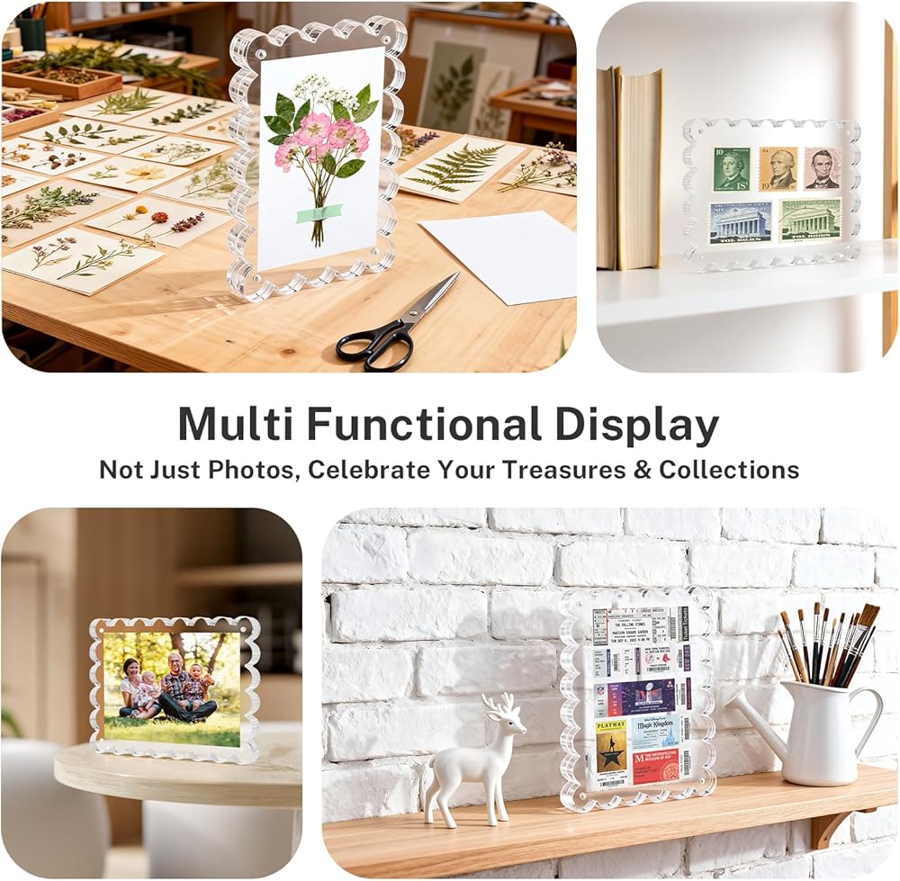【شاشة متعددة الاستخدامات بزاوية 360 درجة】 اتجاه أفقي/رأسي لشاشة كاملة بإطار صور 5 × 7 أو أوضاع عائمة لتتناسب مع أي جمالية للغرفة. إطار أكريليك شفاف مزدوج الجوانب مقاس 5x7 يتيح الرؤية في اتجاهين (يعمل كحامل فردي/مزدوج الجوانب)، مما يجعل إطار الصورة هذا مقاس 5x7 عنصرًا أساسيًا للديكور متعدد الاستخدامات. اعرض صور أعياد الميلاد والتخرج والزفاف في هذا الإطار الفاخر مقاس 5 × 7 واعتز بكل ذكرى ثمينة