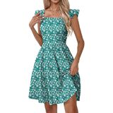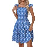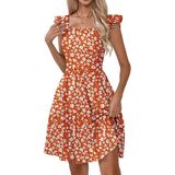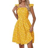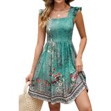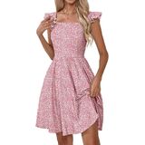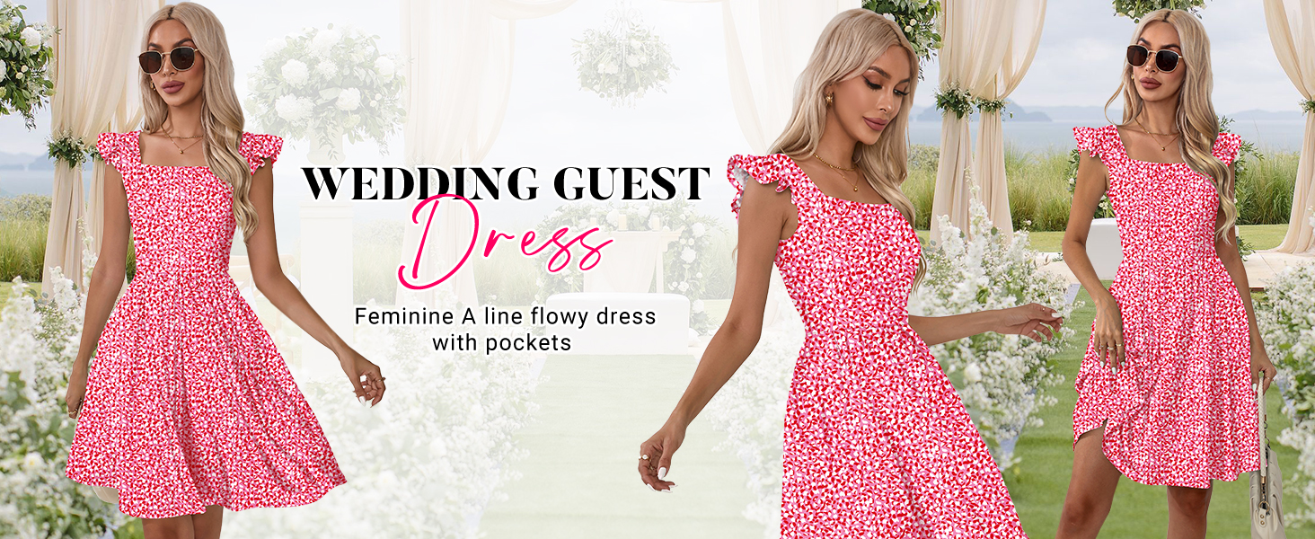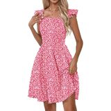 فساتين Naggoo الصيفية النسائية الكاجوال برقبة مربعة وفستان صيفي مزين بالورود مع جيوب على شكل حرف A فستان شاطئ واسع in Kuwait
