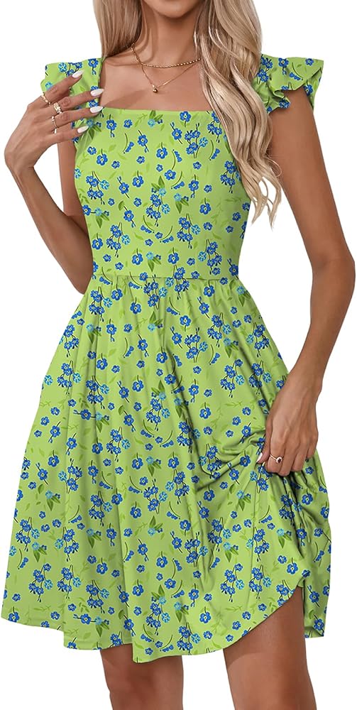 • المزايا: يأتي هذا الفستان النسائي بطباعة زهور ملونة، ورقبة مربعة، وأكمام قصيرة مكشكشة، وطول فوق الركبة، وجيبين جانبيين. طول فستان الشمس اللطيف جيد أيضًا، ليس طويلاً جدًا أو قصيرًا جدًا. يستخدم إصدار A-line، ويمكنه إظهار منحنياتك وإخفاء بطنك بشكل جيد.