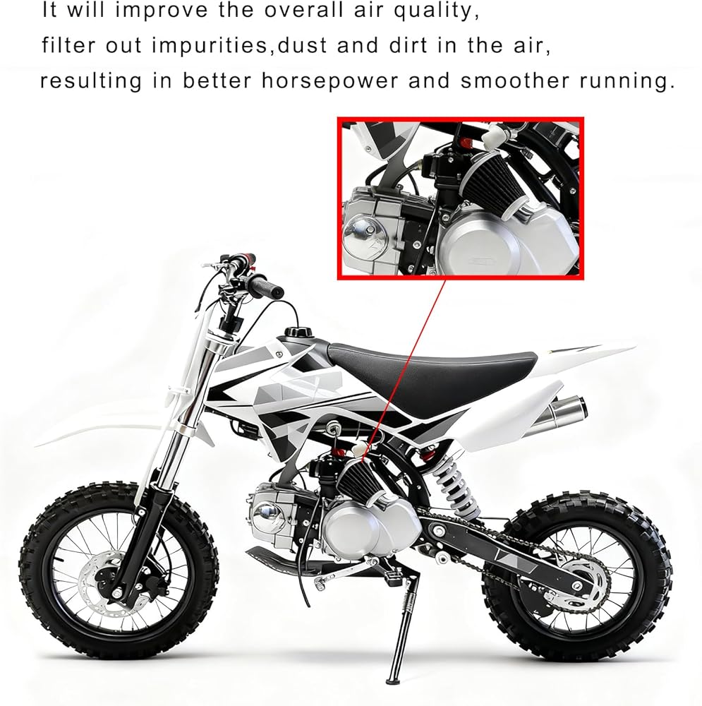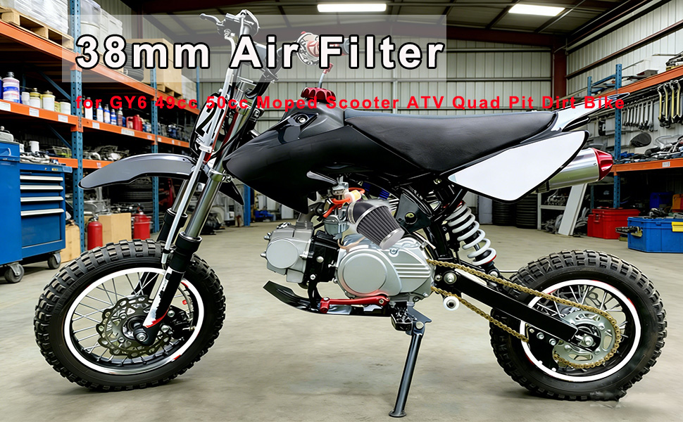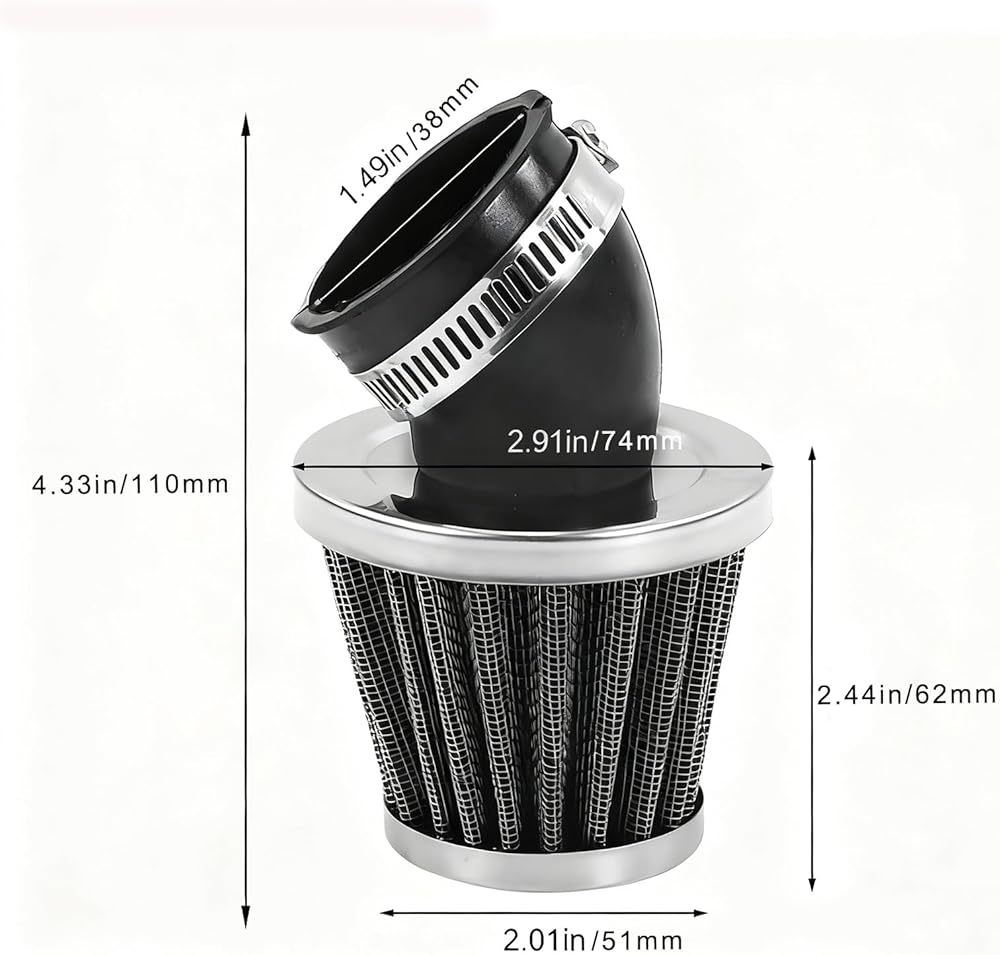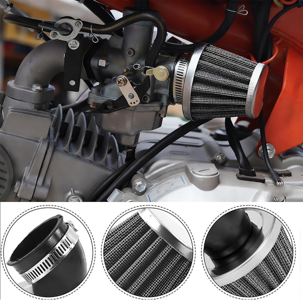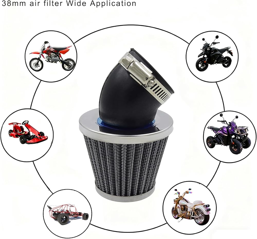 • [تركيب عالمي 38 مم - توافق واسع] مصمم للمحركات الصغيرة ذات رقبة مدخل مكربن ​​38 مم. يضمن هذا الحجم القياسي التوافق مع مجموعة واسعة من المحركات سعة 50 سم مكعب إلى 125 سم مكعب، والتي توجد عادة في الدراجات الصغيرة ودراجات الحفر والمركبات المختلفة للطرق الوعرة. يجعل تصميم المشبك العالمي عملية التثبيت سهلة لكل من المخزون والإعدادات المخصصة.