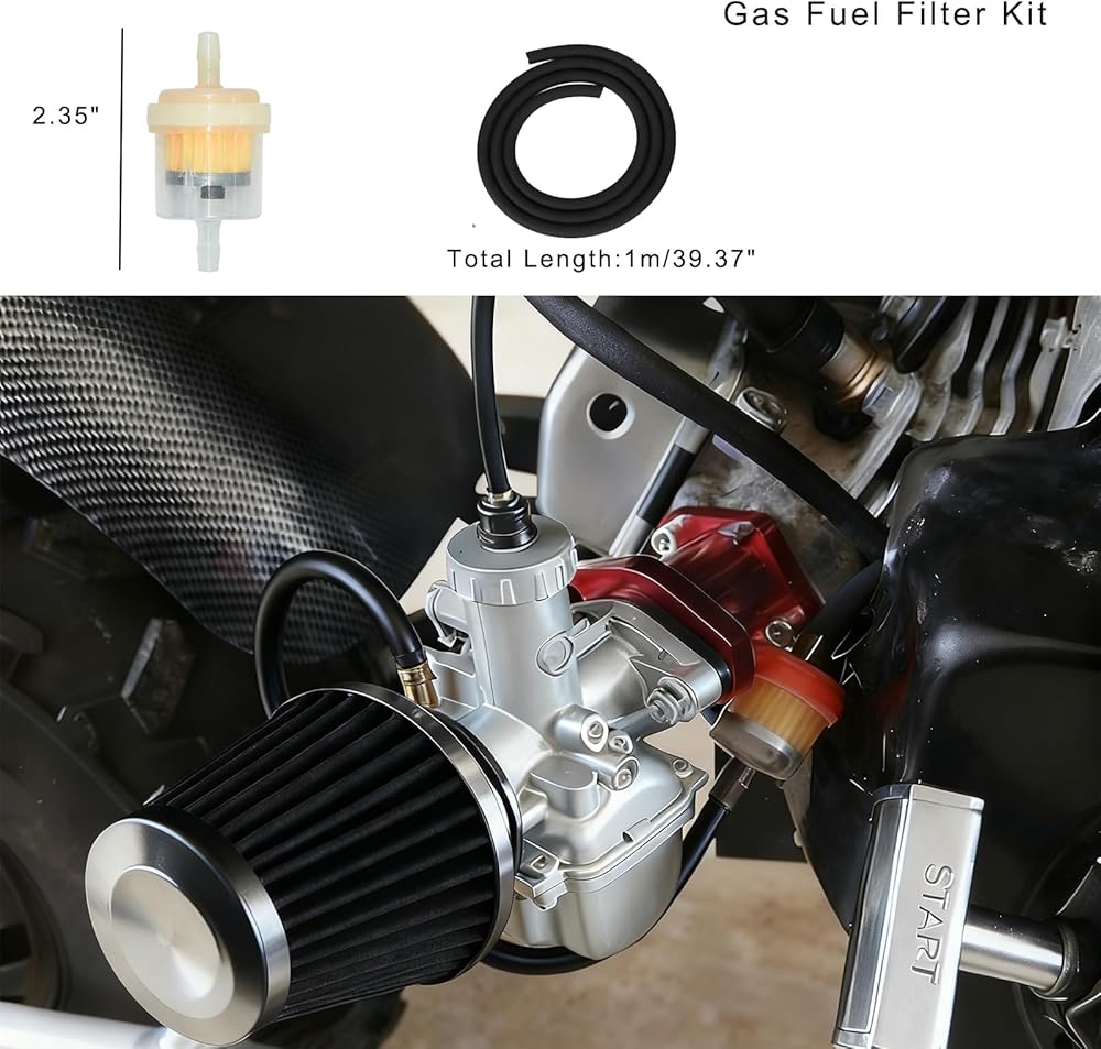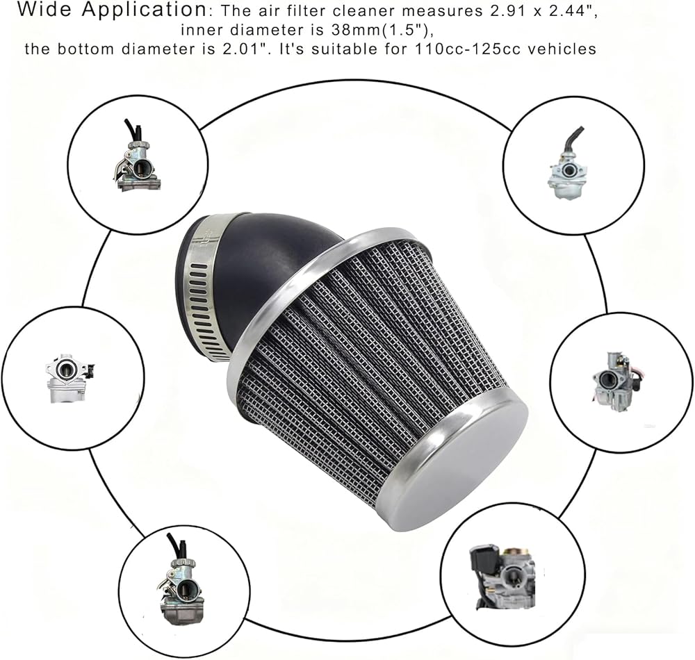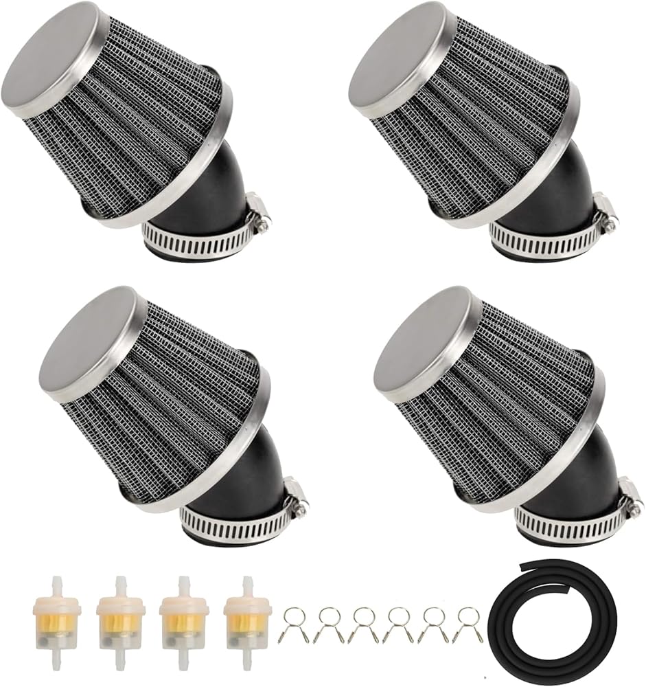 4 قطع طقم فلتر هواء 38 ملم مع 4 فلاتر وقود، فلتر مدخل هواء للمكربنات العالمية، يناسب محركات 50 سي سي إلى 150 سي سي
