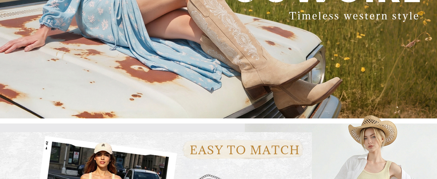 أحذية رعاة البقر بمقدمة قصيرة: بدءًا من ملابس الشارع اليومية وأسواق عطلة نهاية الأسبوع وحتى الحفلات المسائية والمهرجانات الموسيقية، تضيف أحذية راعية البقر المطرزة المكتنزة هذه بسهولة لمسة عصرية إلى أي مناسبة.