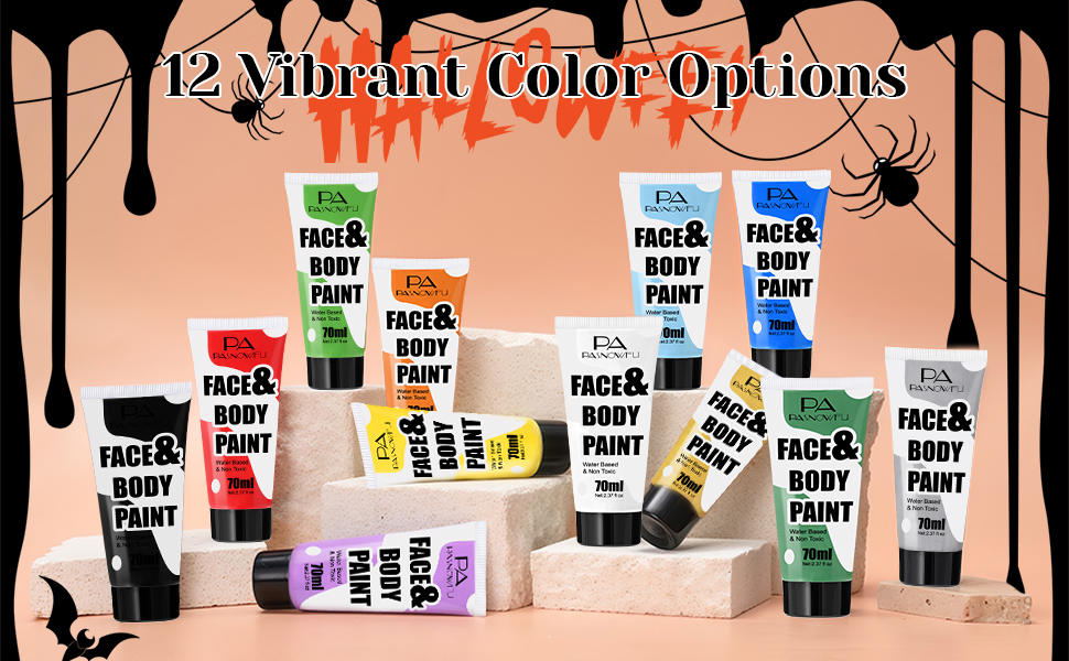 [طلاء الجسم المائي اللطيف] يضمن طلاء الوجه المائي الصديق للبشرة الراحة والأمان. يمكن مزجه وتطبيقه بسهولة باستخدام الفرش أو الإسفنج، ويجف دون أن يتشقق، ويمكن إزالته بسهولة بصابون خفيف وماء. مناسب حتى للبشرة الحساسة، وهو مثالي للارتداء طويل الأمد في المناسبات التنكرية أو العروض المسرحية أو حفلات مكياج الهالوين المفعمة بالحيوية.
