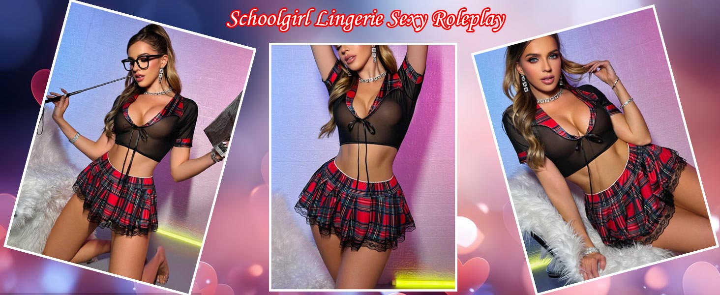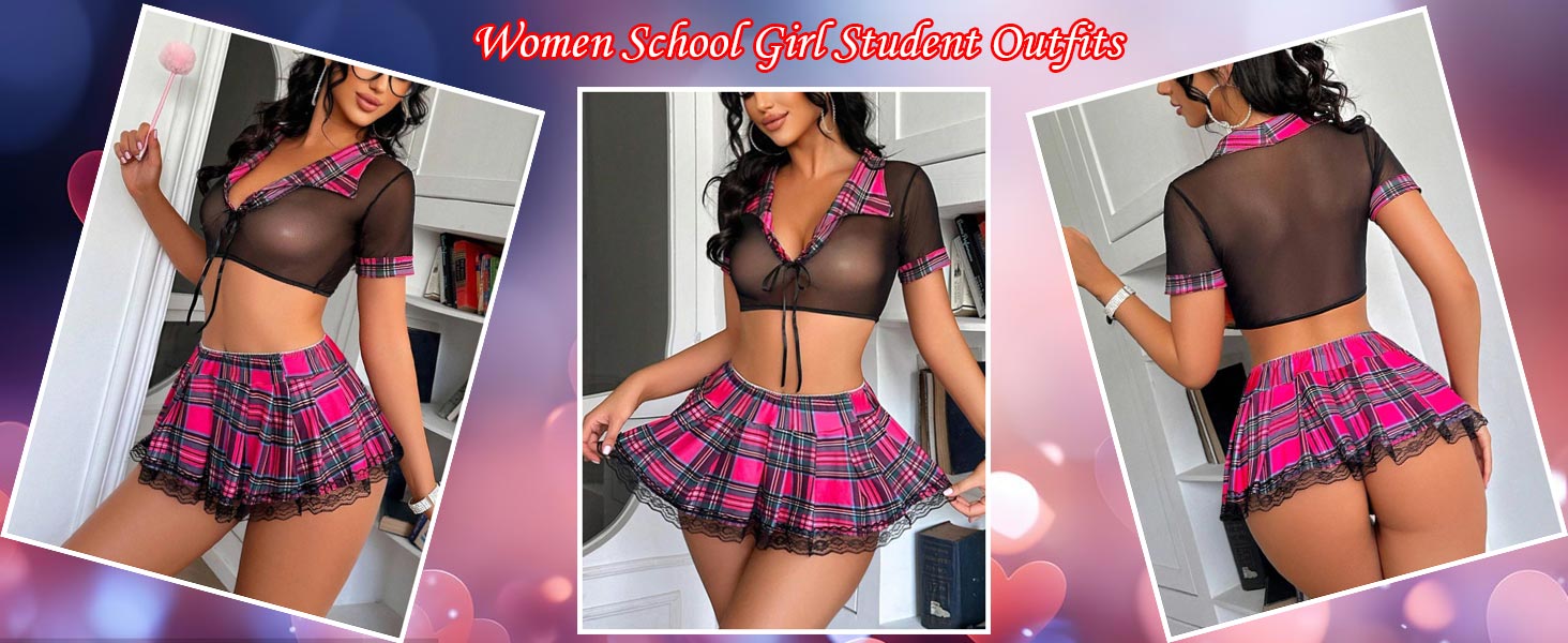 💗Material: Myilewjt women schoolgirl outfit is made of 95% Polyester and 5% Elastane. The fabric is comfortable and soft, and the mesh top is elastic.