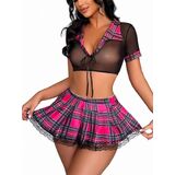 💗Package Content: 1 x Sexy Costume Lingerie Set for Women( Mesh Crop top + Plaid pleated mini skirt + G-String)