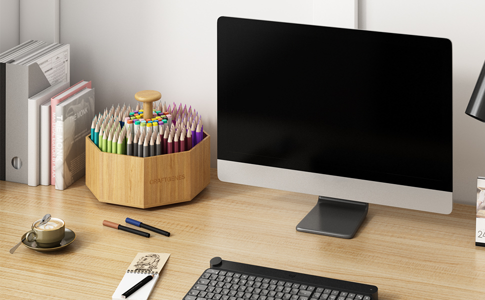 تصميم سلس يدور بزاوية 360 درجة: يمكنك الوصول بسهولة إلى مستلزماتك من خلال دوران سلس بزاوية 360 درجة. يحافظ منظم المكتب الدوار هذا على الأقلام وأقلام التحديد وأقلام الرصاص واللوازم المكتبية في متناول اليد - وهو مثالي للاستخدام في المكتب أو المنزل أو المدرسة.