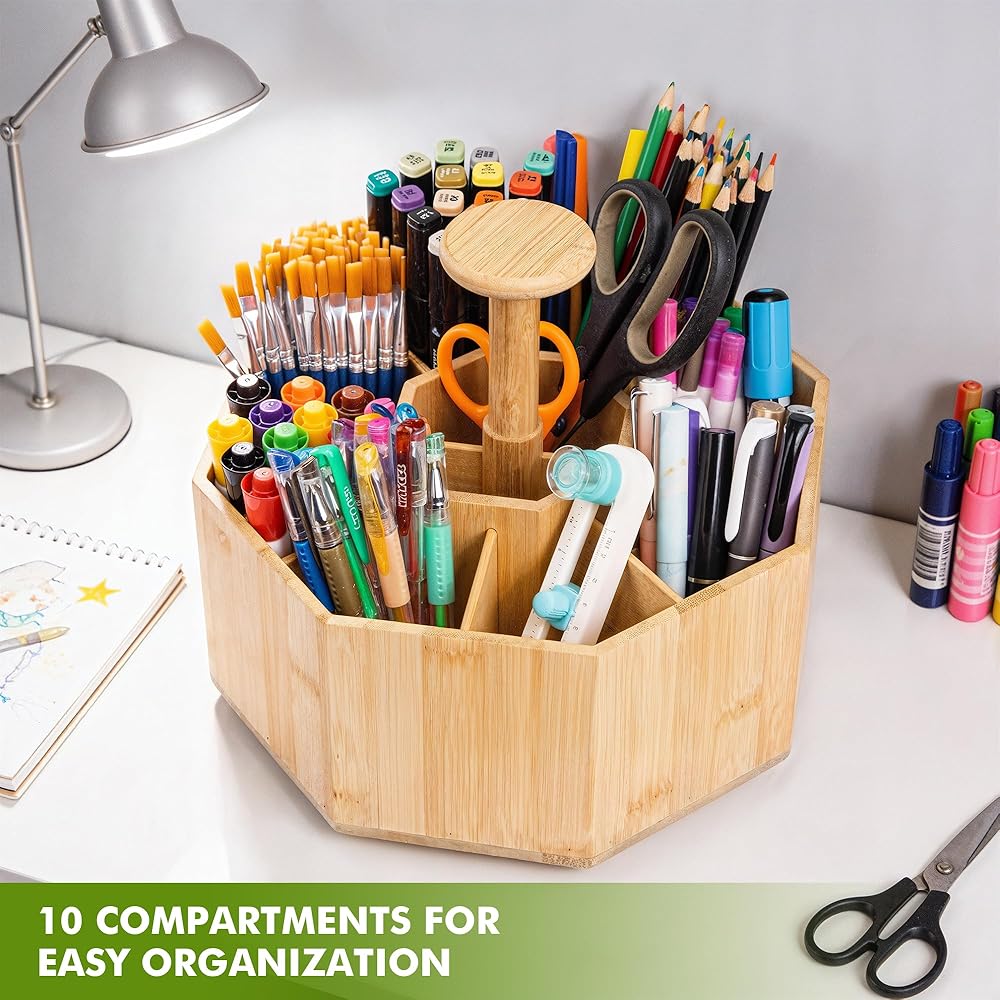 سعة كبيرة تحتوي على 10 مساحات تخزين: مصممة بـ 10 مساحات واسعة لتنظيم الأقلام والأقلام الملونة وأقلام التحديد والمقص والمزيد. حافظ على مساحة عملك نظيفة مع حامل القلم العملي هذا للمكتب ومنظم سطح المكتب.