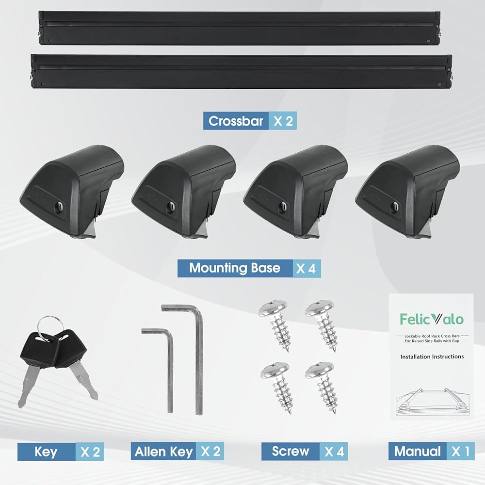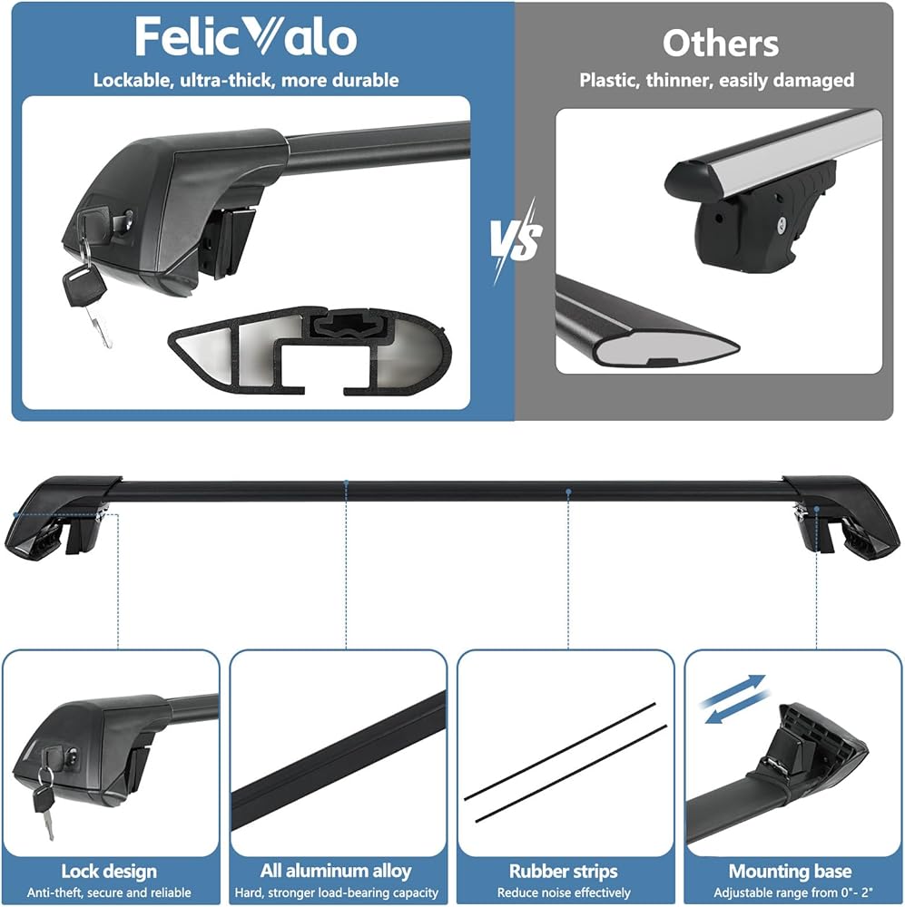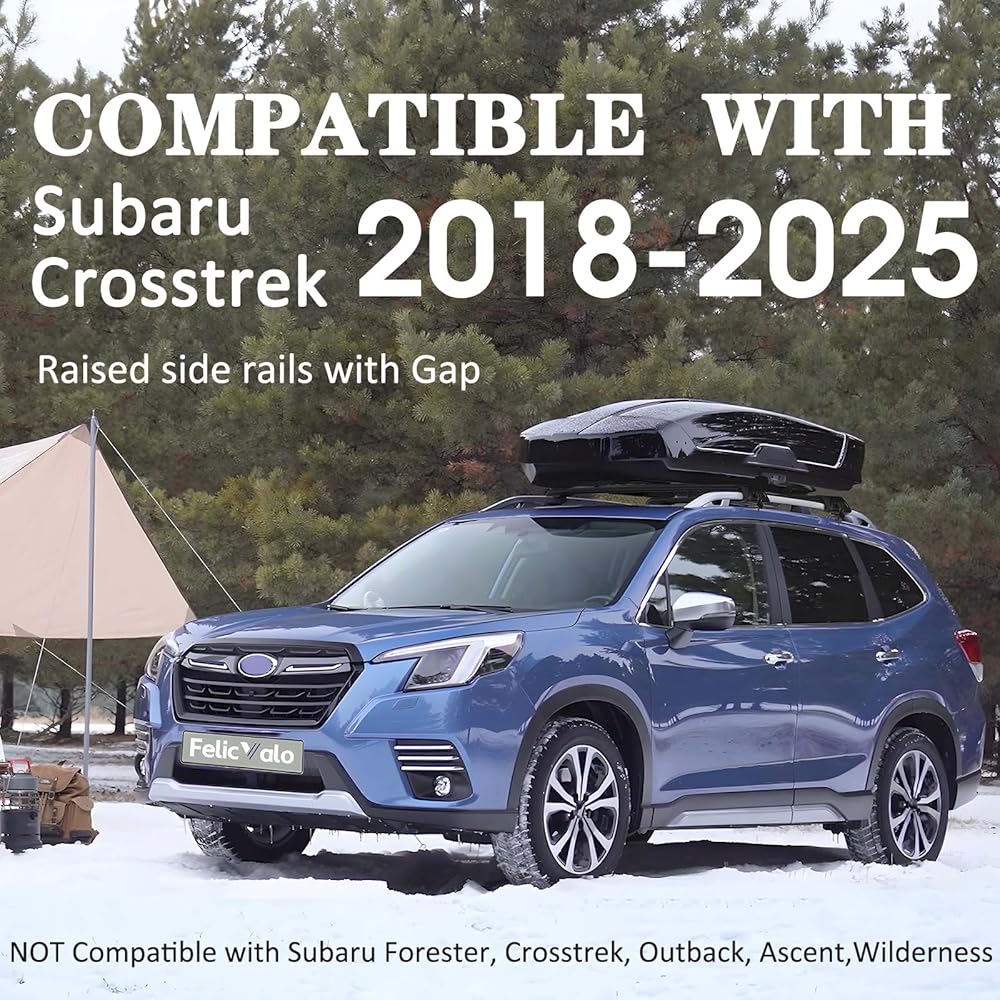 ✔️【توافق السيارة】: القضبان المتقاطعة لحامل السقف من FelicValo مصنوعة خصيصًا لسيارة Subaru Crosstrek 2018-2025 مع قضبان جانبية مرتفعة. ملحوظة: غير مناسب للموديلات التي لا تحتوي على سياج جانبي مرتفع.
