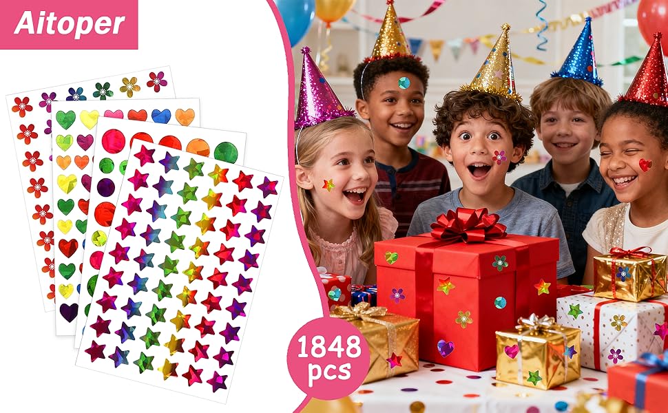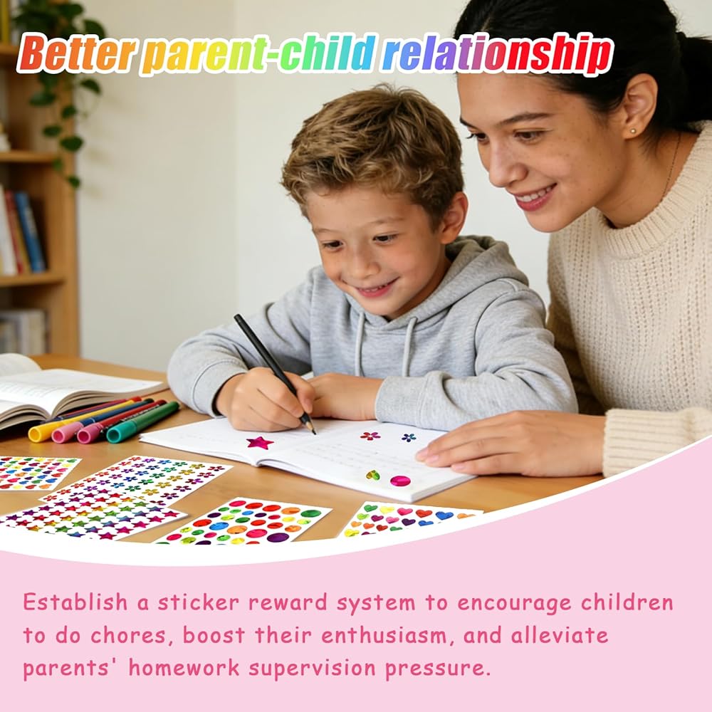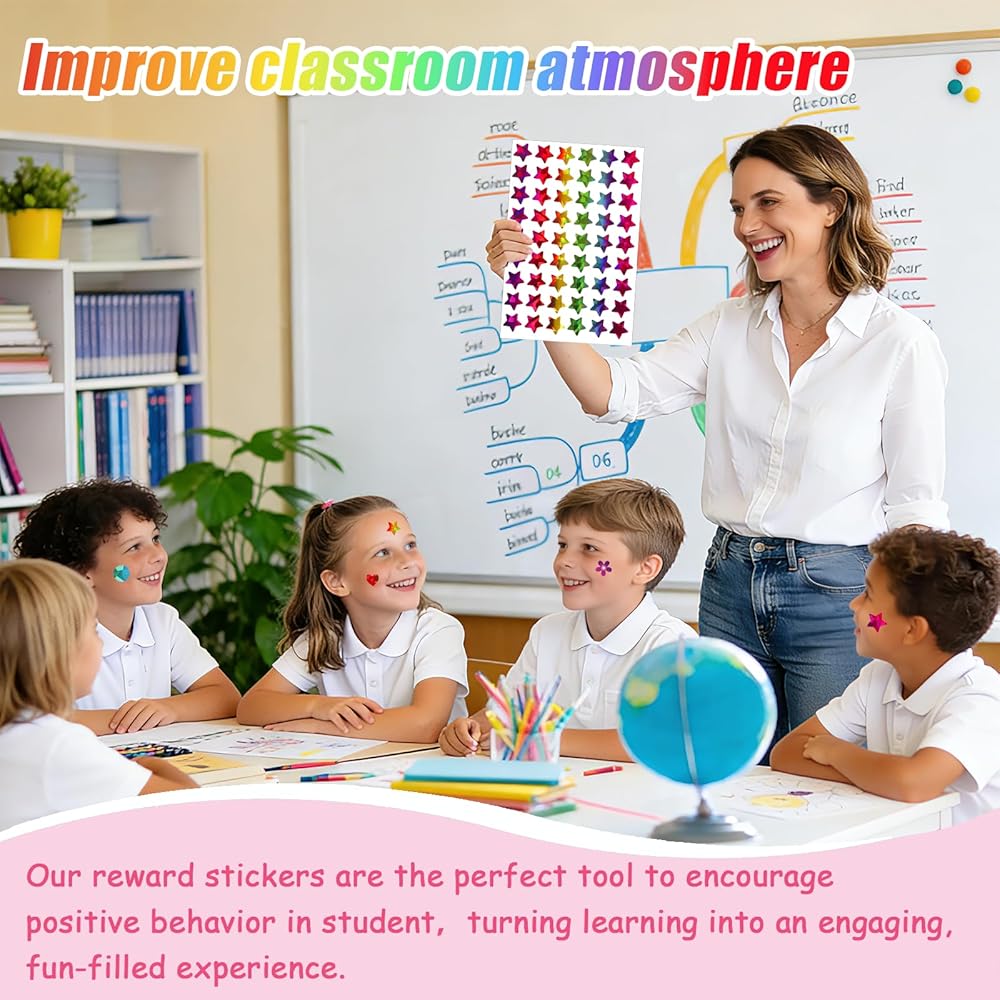 نطاق واسع من الاستخدامات: هذه الملصقات المتلألئة لا تجلب السعادة لأنشطة الأطفال كأدوات لإدارة الفصل الدراسي للمعلمين فحسب، بل يمكن استخدامها أيضًا لديكورات الحفلات، والحرف اليدوية، وتغليف الهدايا، ومشروعات سجل القصاصات.