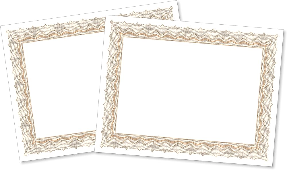 Showcase your achievements in style! Create professional awards that you'll be proud to frame with our premium quality certificate papers. Printed on blank parchment stock, our certificate papers add a classic look to any employee-of-the-month award, school diploma, certificates of achievement, participation, or appreciation, honor roll student awards, office employee or volunteer awards, citizenship documents, and more. This set features a luxe gold border on a bright white background with a beautifully intricate gold pattern framing the entire paper that is sure to highlight any text with flair.