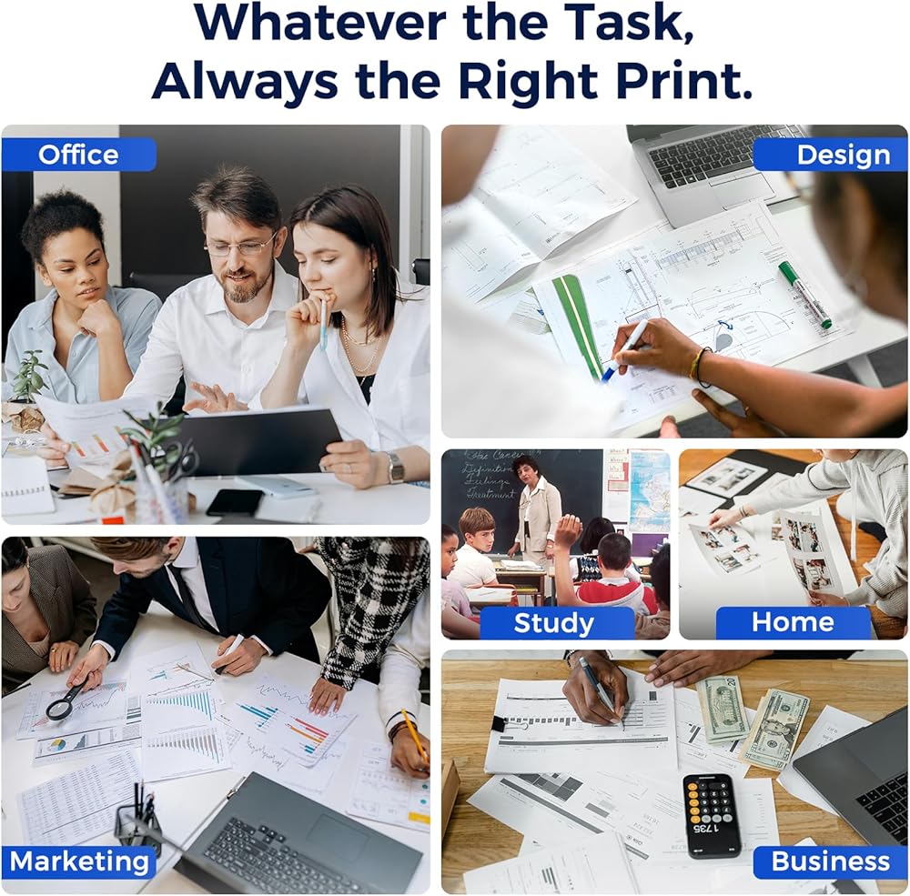 • إخراج حاد وحيوي بجودة احترافية: ينتج الحبر عالي الجودة نصًا واضحًا وألوانًا نابضة بالحياة. لا يقتصر التميز على المستندات المكتبية الروتينية وتقارير الطلاب فحسب، بل يلبي أيضًا متطلبات الطباعة الملونة الاحترافية للعروض التقديمية والمواد التسويقية.