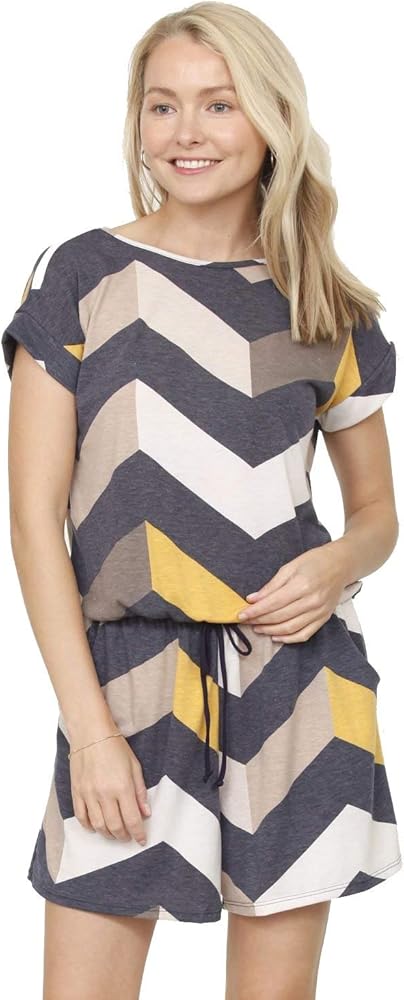 جمبسوت نسائي مطبوع عليه شيفرون على شكل بيضة صلبة، ثوب فضفاض أنيق كاجوال مريح مخطط بجيوب (خردل بحري، متوسط)