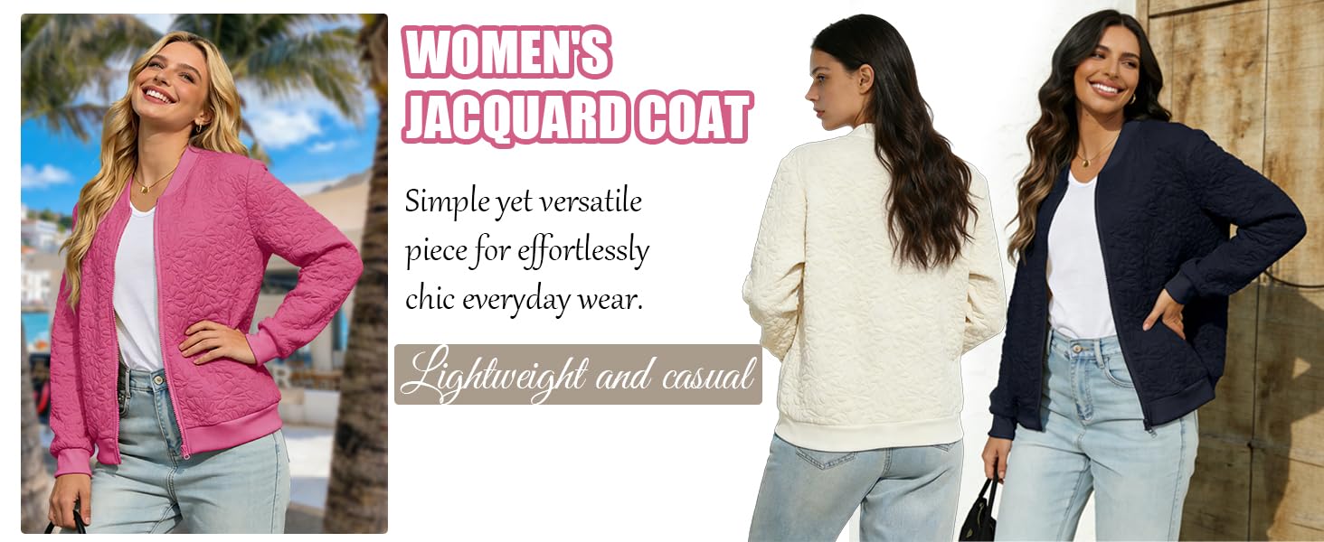 التصميم: تم تصميم السترات خفيفة الوزن والمفتوحة من الأمام للسيدات بملمس جاكار أنيق لأسلوب كاجوال أنيق. تتميز السترات النسائية بياقة واقفة وجيبين جانبيين وعمليين مناسبين لك لحمل الأشياء مع الحفاظ على دفء يديك في الأيام الباردة. إغلاق بسحاب هو أهم ما يميز السترة النسائية الكاجوال، سهل الارتداء والخلع. سترة نسائية فضفاضة تخفي المناطق التي تريد إخفاءها بينما تناسب إطارك دون أن تبدو ضخمة.